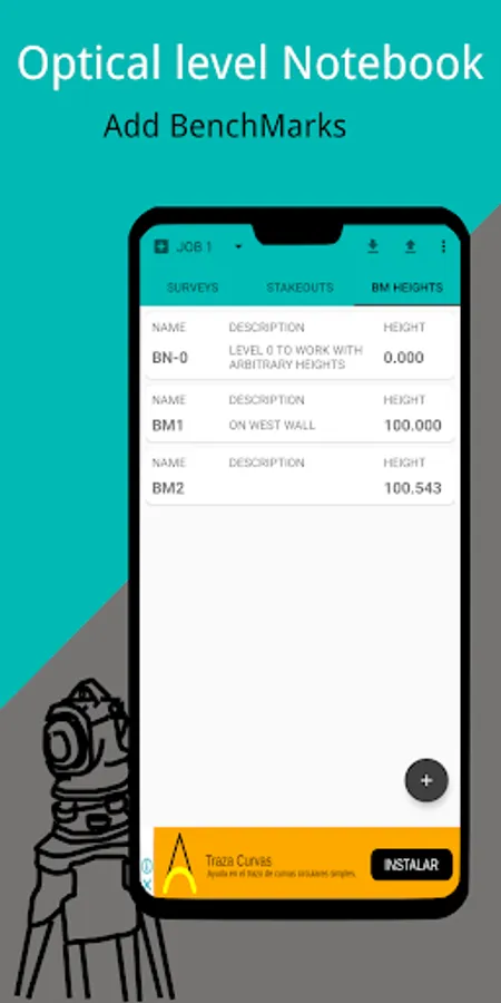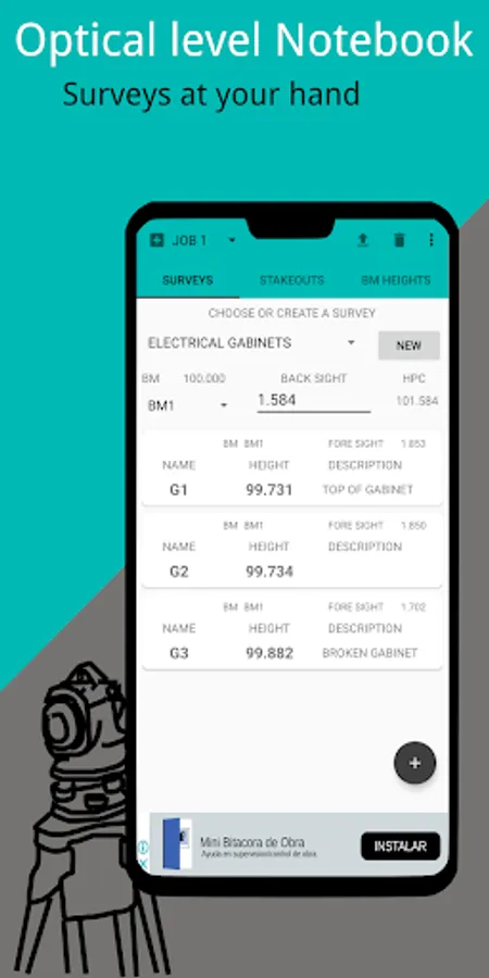 With this app you can mánage different projects, create levelling surveys or stake out any point height to field, helping you with simple and common jobs in surveying with optical level.