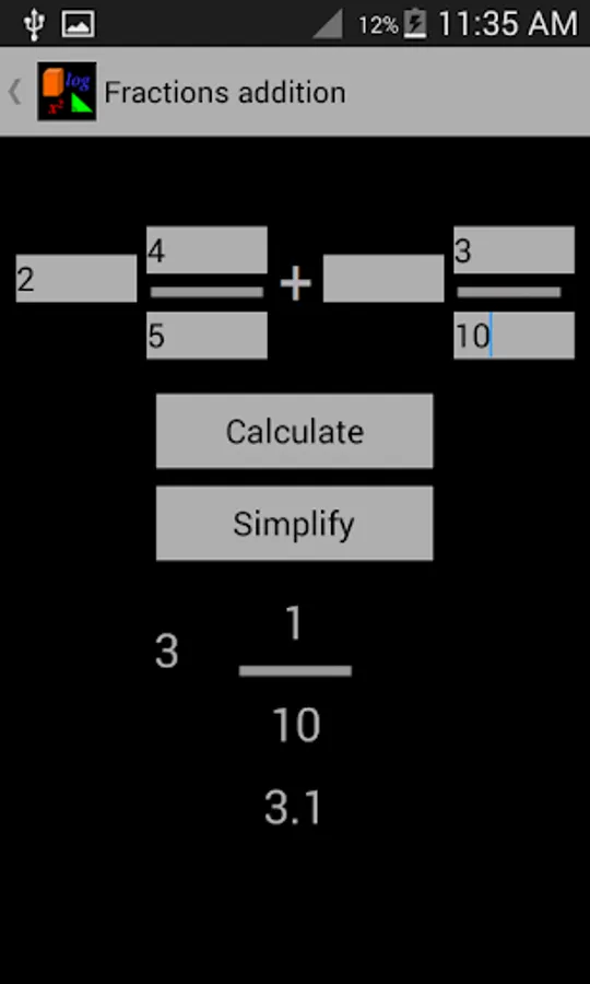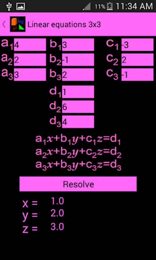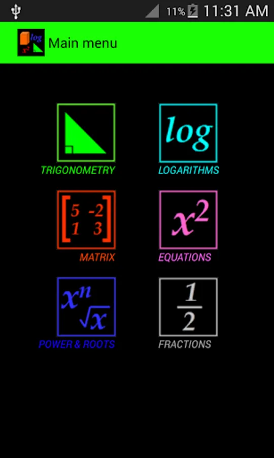 This application is a simple intuitive calculator that has almost all the functions of a scientific calculator but with an attractive and didactic interface. With it you can compute all trigonometric functions and their inverses. Get the inverse and the determinant of 2x2 and 3x3 matrices. Calculate natural logarithms and anti-logarithms of different bases. Calculate roots and powers. Solve quadratic equations and systems of linear equations 2x2 and 3x3. And make arithmetic operations with fractions. It will be very useful for high school students.