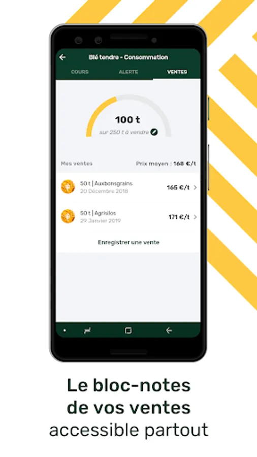 In 5 minutes, the farmer can find the prices of his cooperatives and businesses, set alerts to be notified when to sell and sell directly from his smartphone.