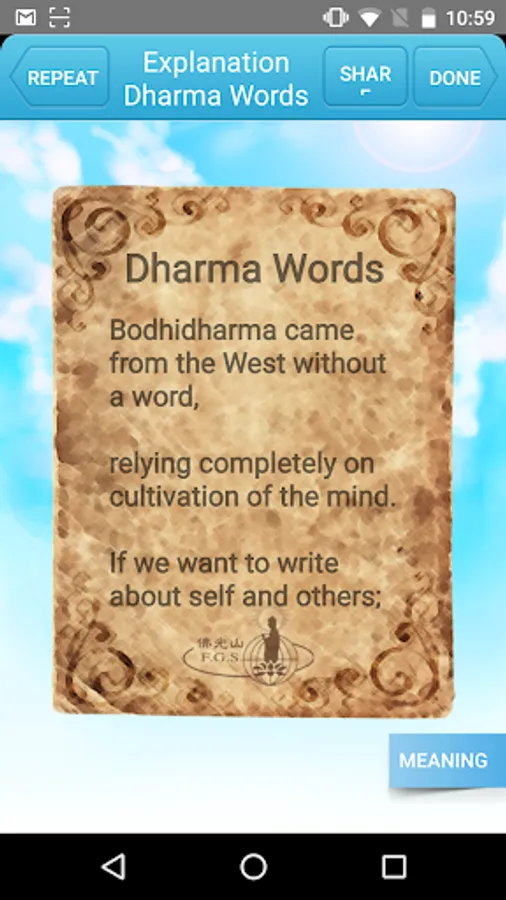 Venerable Master Hsing Yun introduced the “Dharma Words” as a way to share the Buddha’s teachings and inspirations with devotees and visitors.