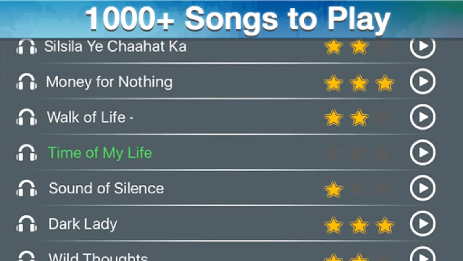 You can play 1000+ songs varied containing all genres such as Rock, Classical, The Latest Pop, Film Theme Tunes, TV Theme Tunes, 60s, 70s, 80s, 90s, Naughties, Modern, Alternative, Indie, Latin and more.Â