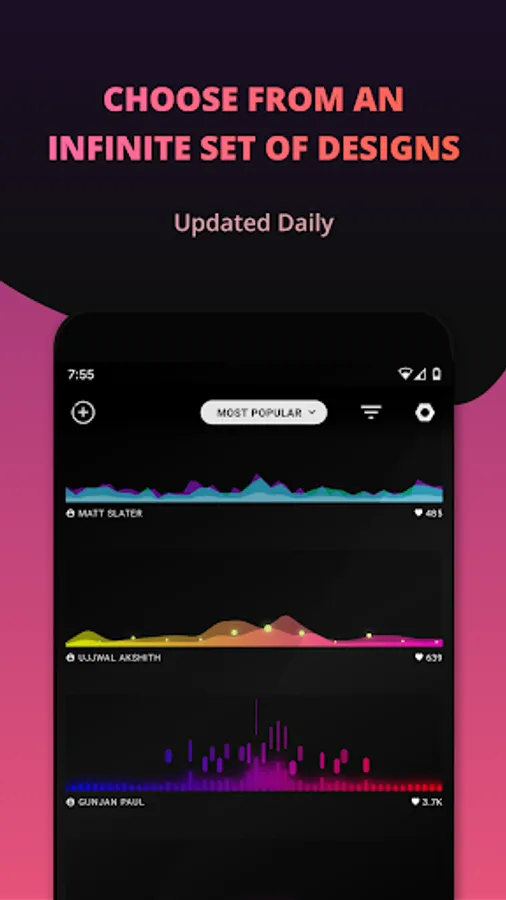 You have an option to select from infinite set of Visualizer Designs updated daily, and it doesn't end up there. You can add them to your favourite list and even edit them to match your needs.
