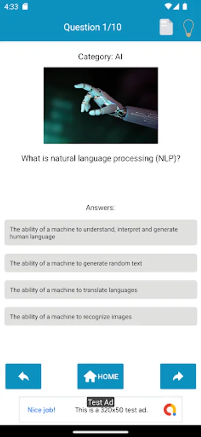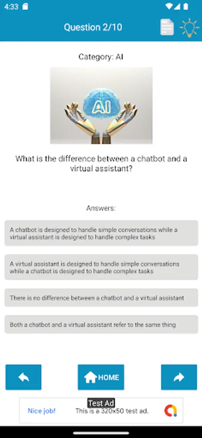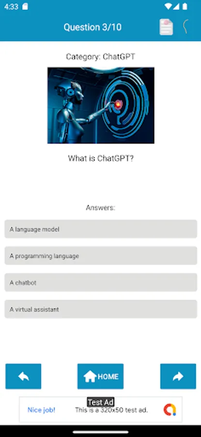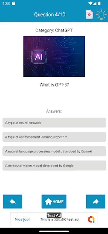 This app has a quiz related to Artificial intelligence (AI) and it’s a fun and interactive way to test your knowledge about artificial intelligence and the capabilities of the popular language models. The app has variety of questions that cover topics like natural language processing, machine learning, and the history of AI.