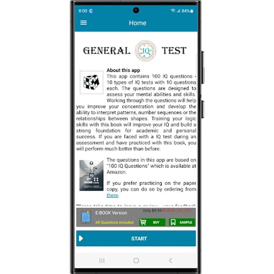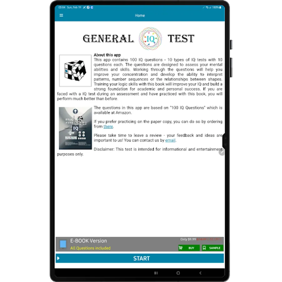 This app contains 100 IQ questions - 10 types of IQ tests with 10 questions each. The questions are designed to assess your mental abilities and skills. Working through the questions will help you improve your concentration and develop the ability to interpret patterns, number sequences or the relationships between shapes. Training your logic skills with this book will improve your IQ and build a strong foundation for academic and personal success. If you are faced with a IQ test during an assessment and have practiced with this book, you will perform much better than before.