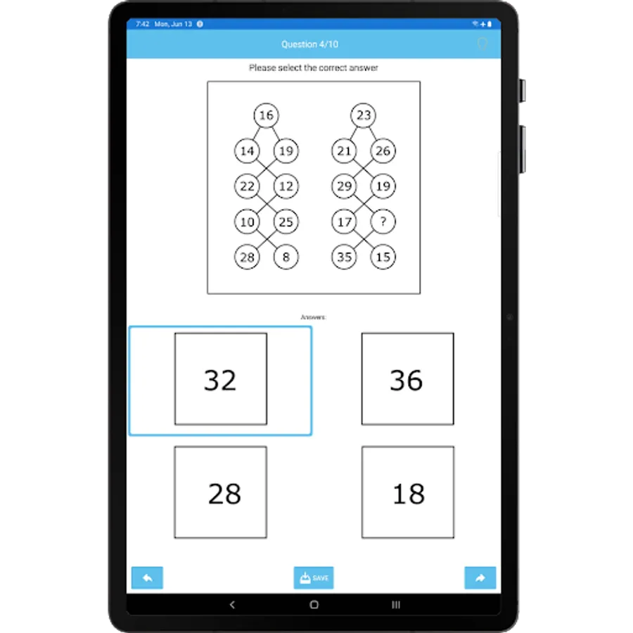 This app consists of total 30 multiple-choice questions. On each test you will get 10 random questions. You will be given 4 choices from which to select and complete the missing element.
