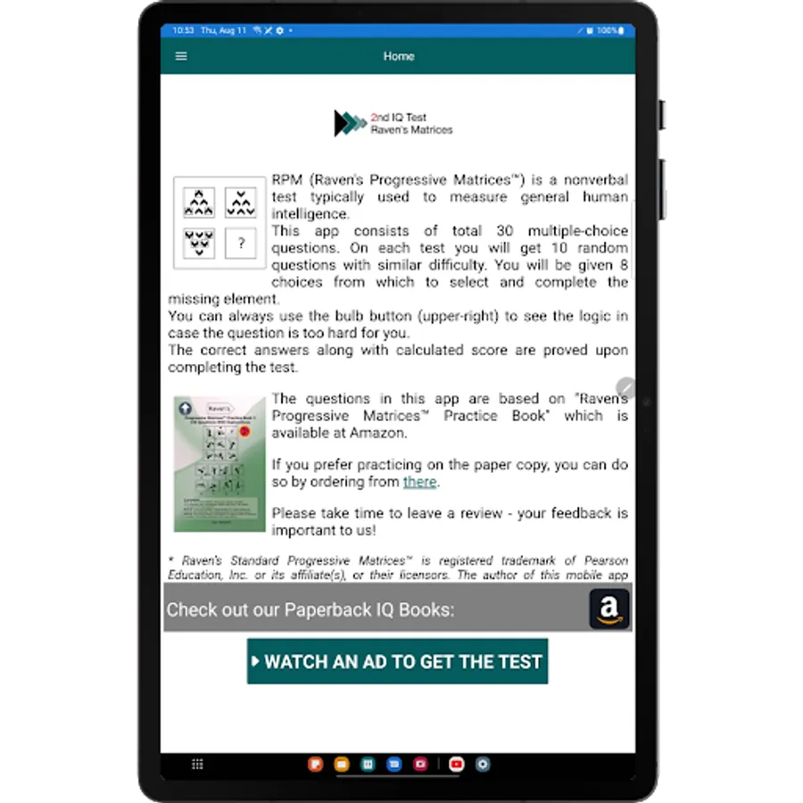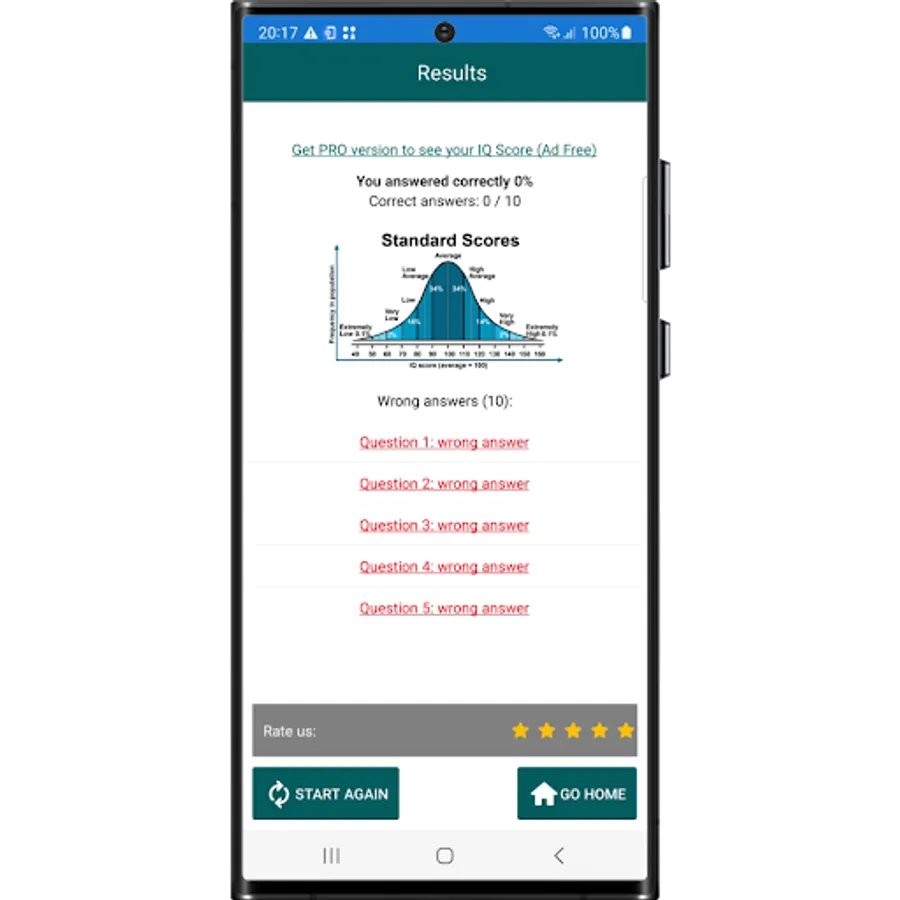 Are you ready to take a quick IQ test? This is the second version of our most popular IQ test app, and it includes new and unique questions. If you want to see even more questions, go to the Google Play Store and look for the PRO version.
