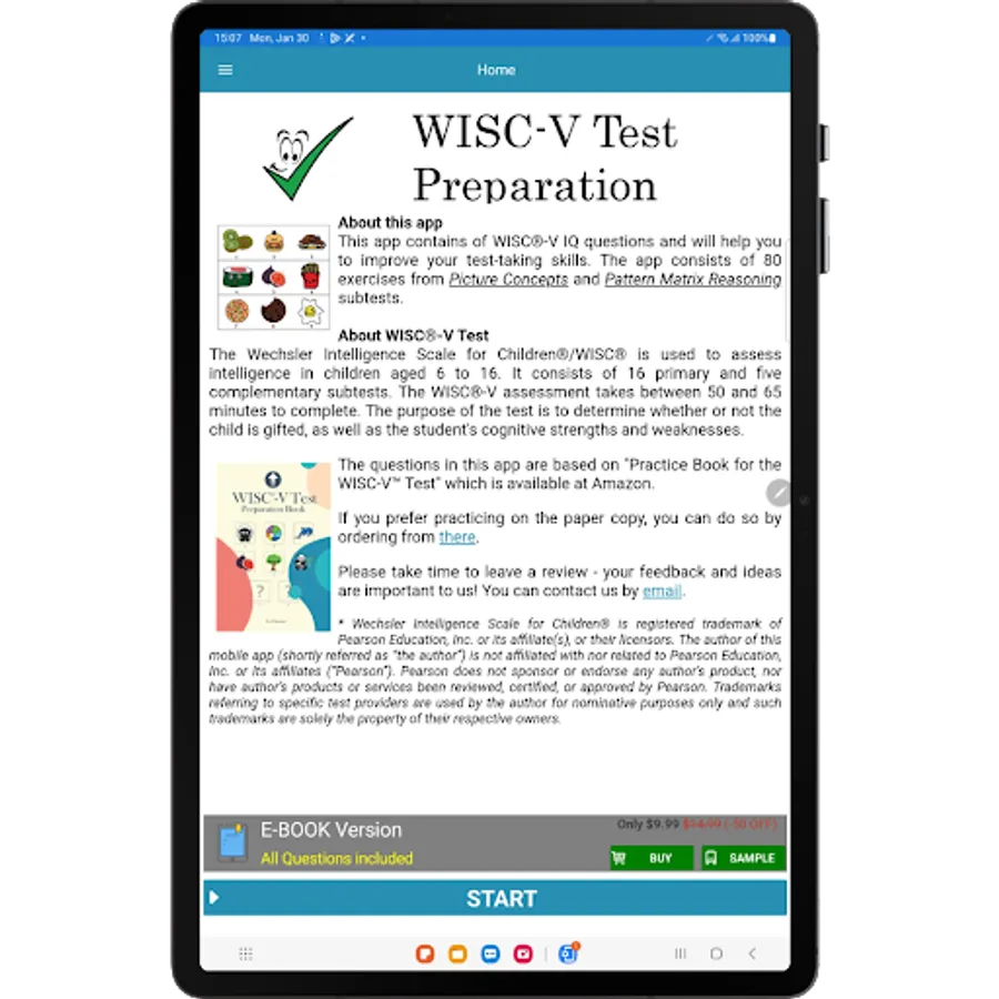 This app will help you to practice and prepare for Wechsler Intelligence Scale for Children (WISC®-V) IQ Test. It consists of total 80 multiple-choice questions. On each test you will get 20 random questions with similar difficulty.
