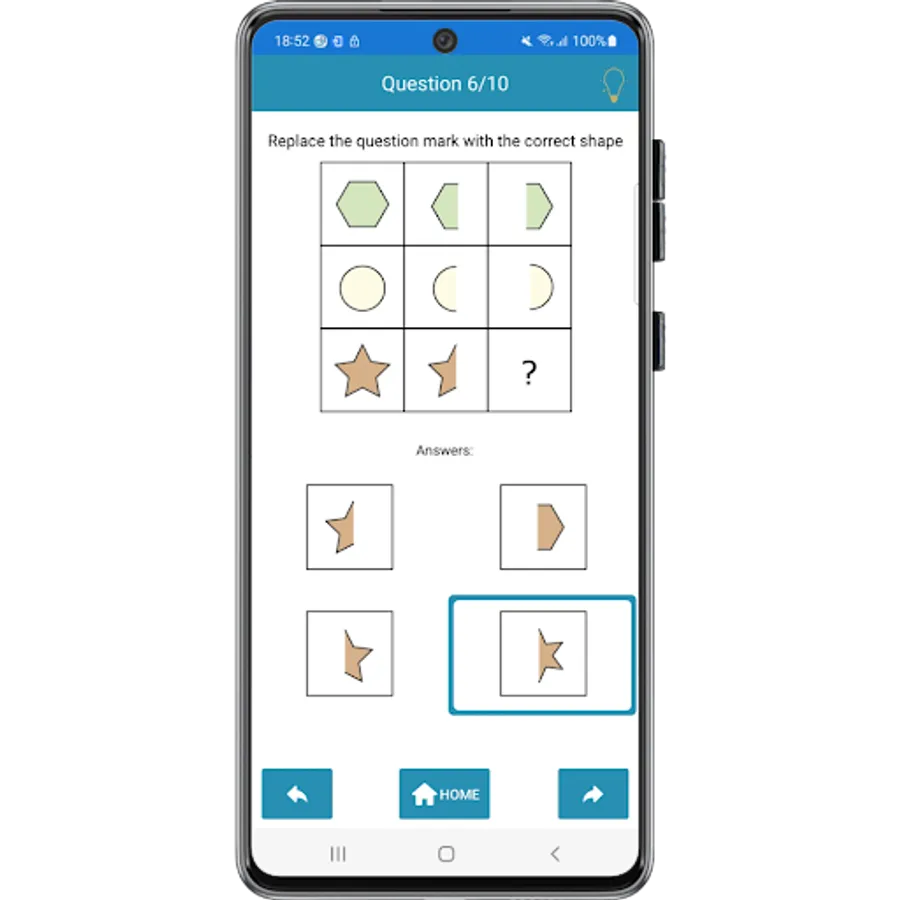 You will be given 4 choices from which to select. You can always use the bulb button (upper-right) to see a hint. The correct answers along with calculated score are proved upon completing the test.