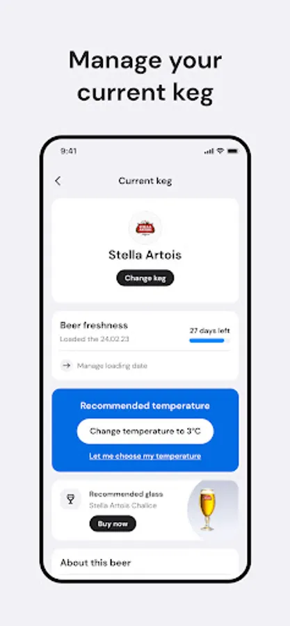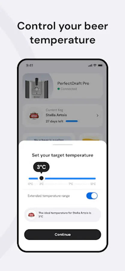 Connect your PerfectDraft machine to the PerfectDraft app to keep track of your volume, beer freshness and change your beer temperature from anywhere, as well as getting custom tips to maximise your experience including recommended temperature, glassware and food pairing for all our 40+ beers.