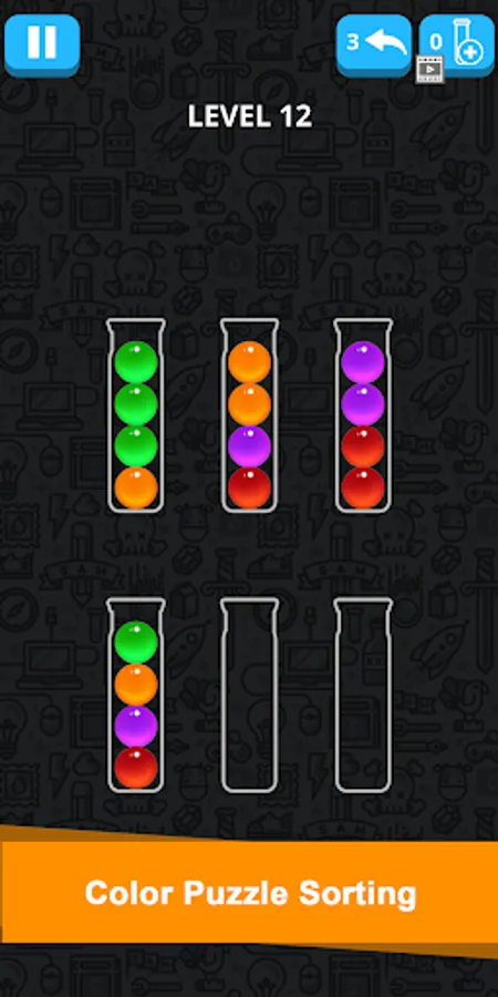 This color ball sort game perfectly entertains and stimulates your brain. To make you enjoy the game and life as you progresses the game becomes more interesting with different skins and balls unlocking. Here is how to play the game,