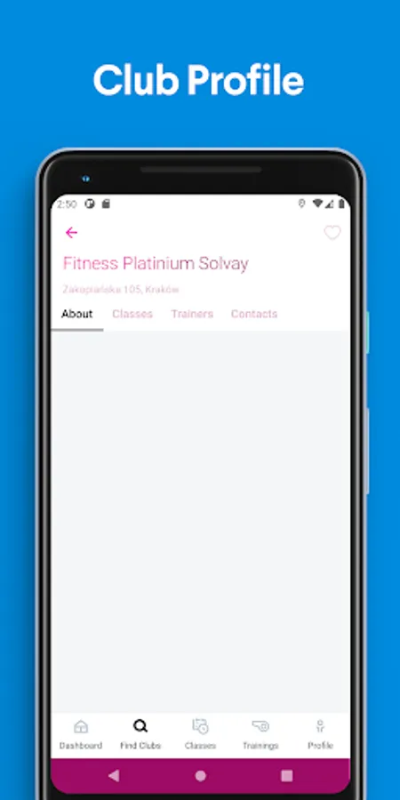 - Uzyskać informacje o klubie, takie jak godziny otwarcia, lokalizacja itp.