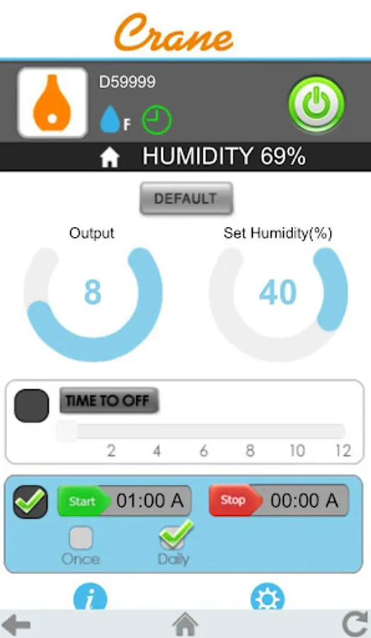 The Crane App allows you to control your Crane smartDevices from anywhere with your Smartphone or Tablet. Monitor and manage the comfort in your home with built in thermostats and humidistats, timer settings, time of day options for when you'd like to activate your smartDevice, and item-specific functions.