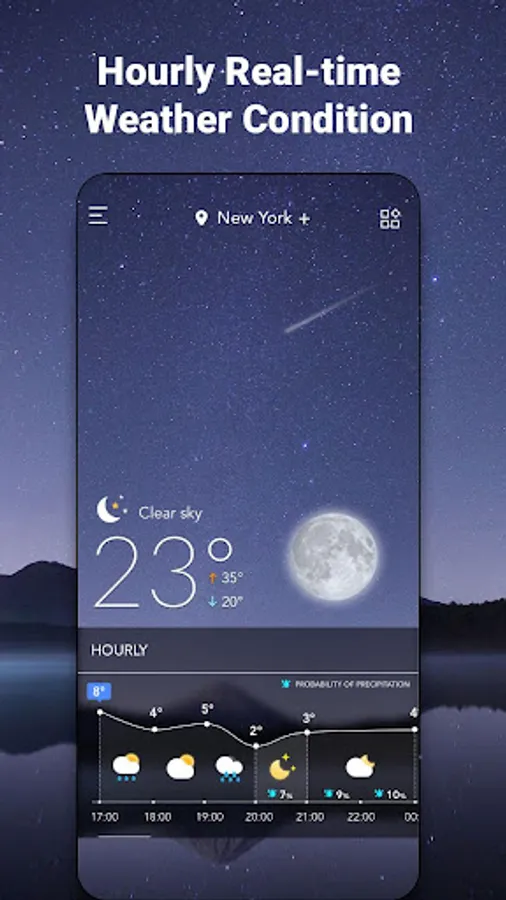 - Widgets can display the current temperature, time and date from the current location to decorate your home screen, simple weather information, daily and hourly forecast.