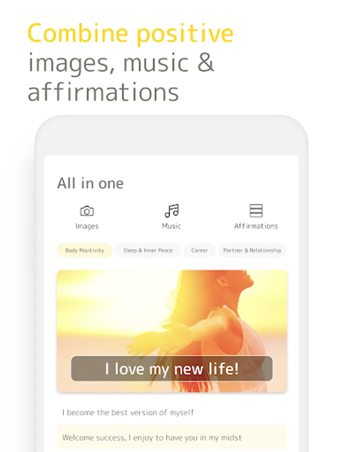 With our positive SELF AFFIRMATIONS & MOTIVATIONAL QUOTES you immediately start to develop a positive mindset. You can choose from 5000+ uplifting affirmations or create your own. You can put your favorite affirmations & motivational quotes on your home screen ( widget ) to stay positive throughout the day. It is an easy method of keeping a positive flow all day.