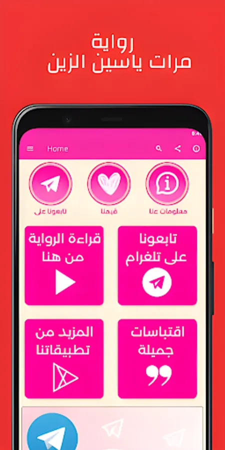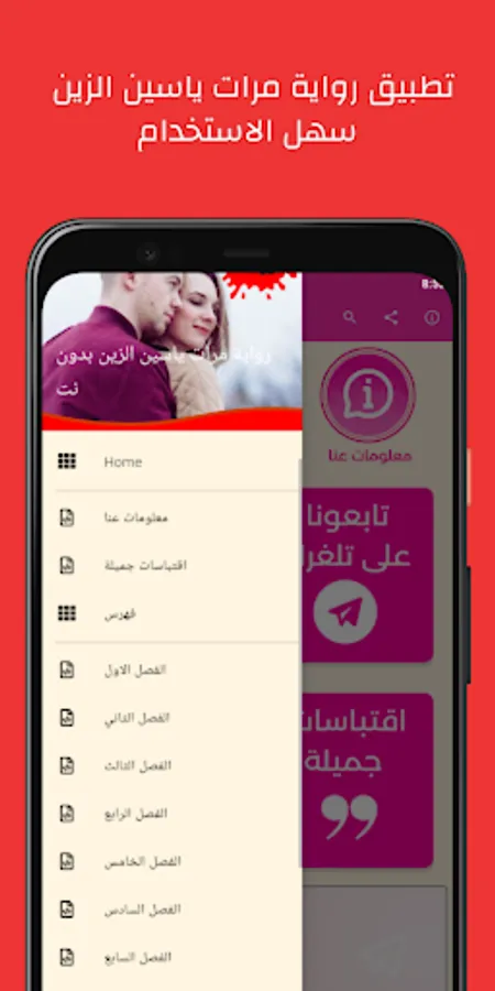 The Marat Yassin Al-Zein novel application is a new application that is easy to use, you just need to install it for free on your mobile phone and use it immediately.