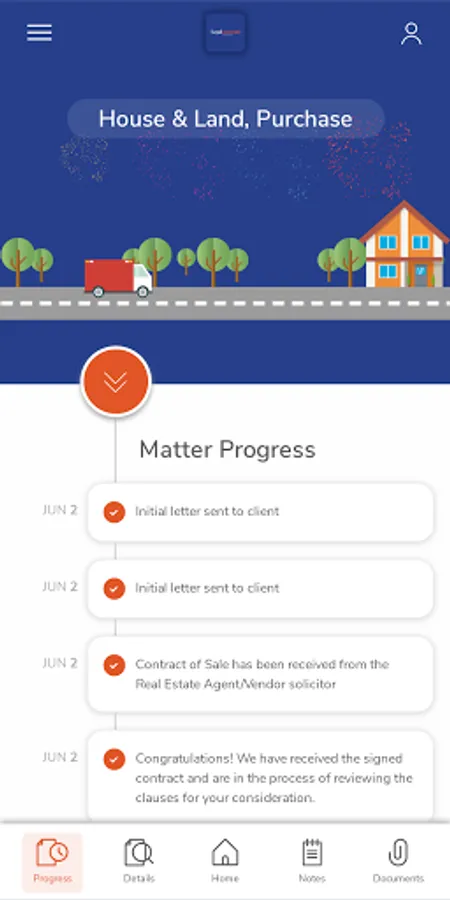With any legal service, you’ll want visibility over the matter without having to pick up the phone! In a world of mobile devices, we now expect the ability to review progress at a time that is convenient to us. This app has been designed with features that keep you updated by providing live matter information. Whether you simply want to check the quote or if you wish to keep track of progress, this is the app for you. You’ll be able to clearly see each step in the legal matter so you understand the process.
