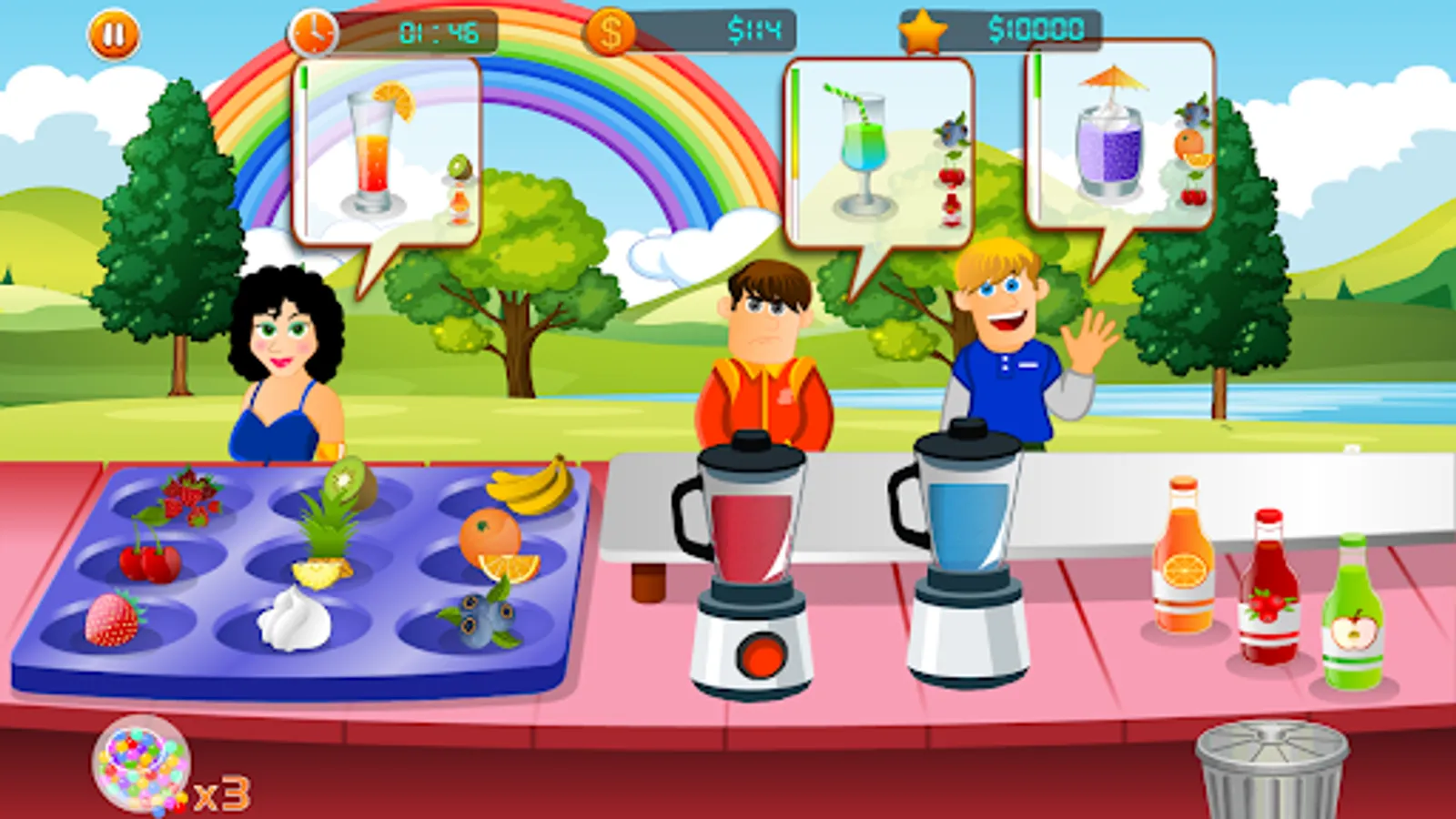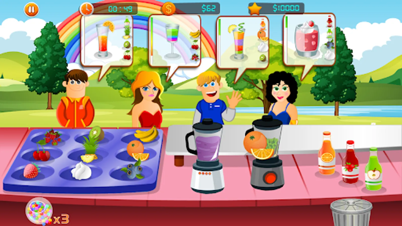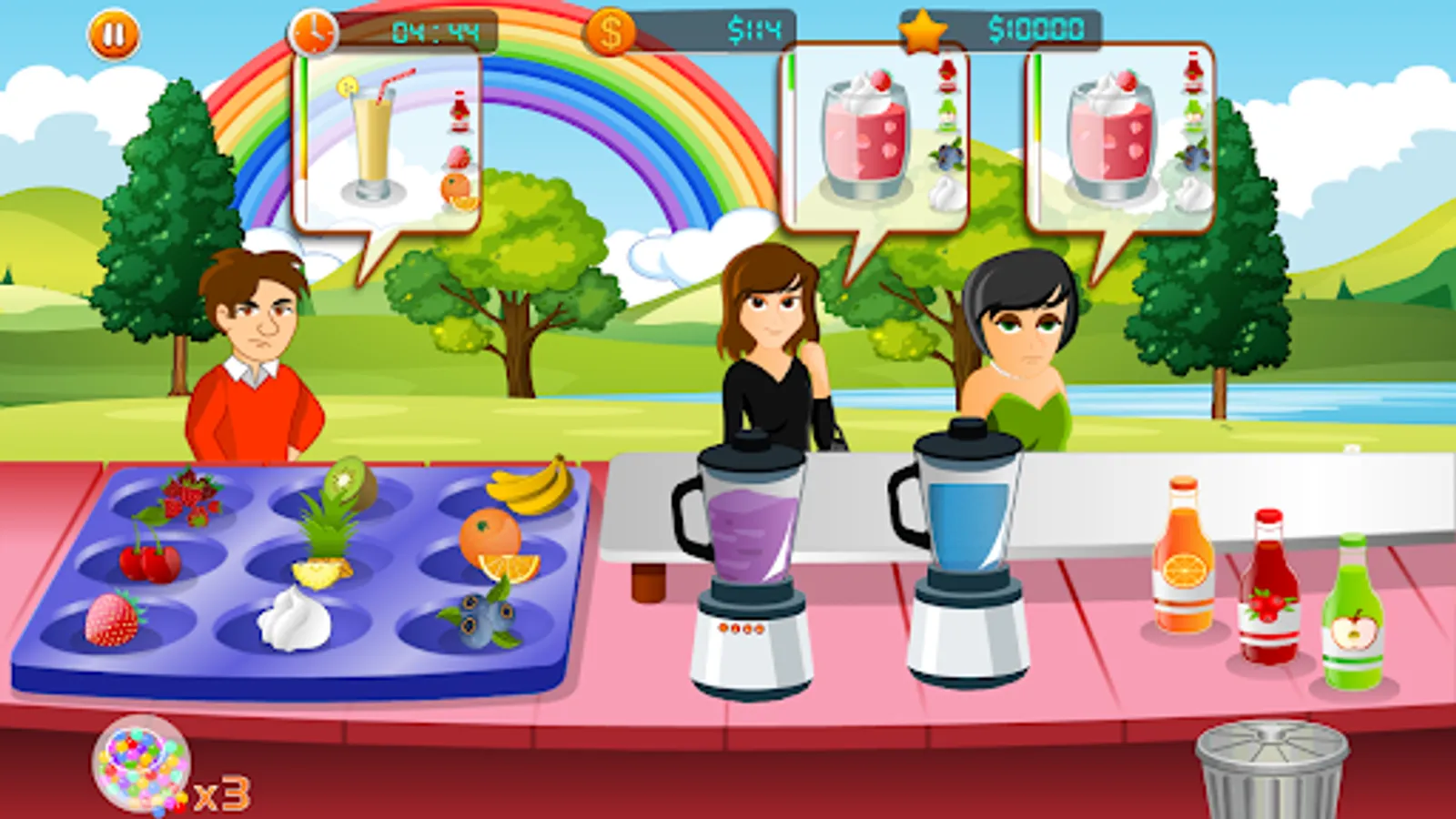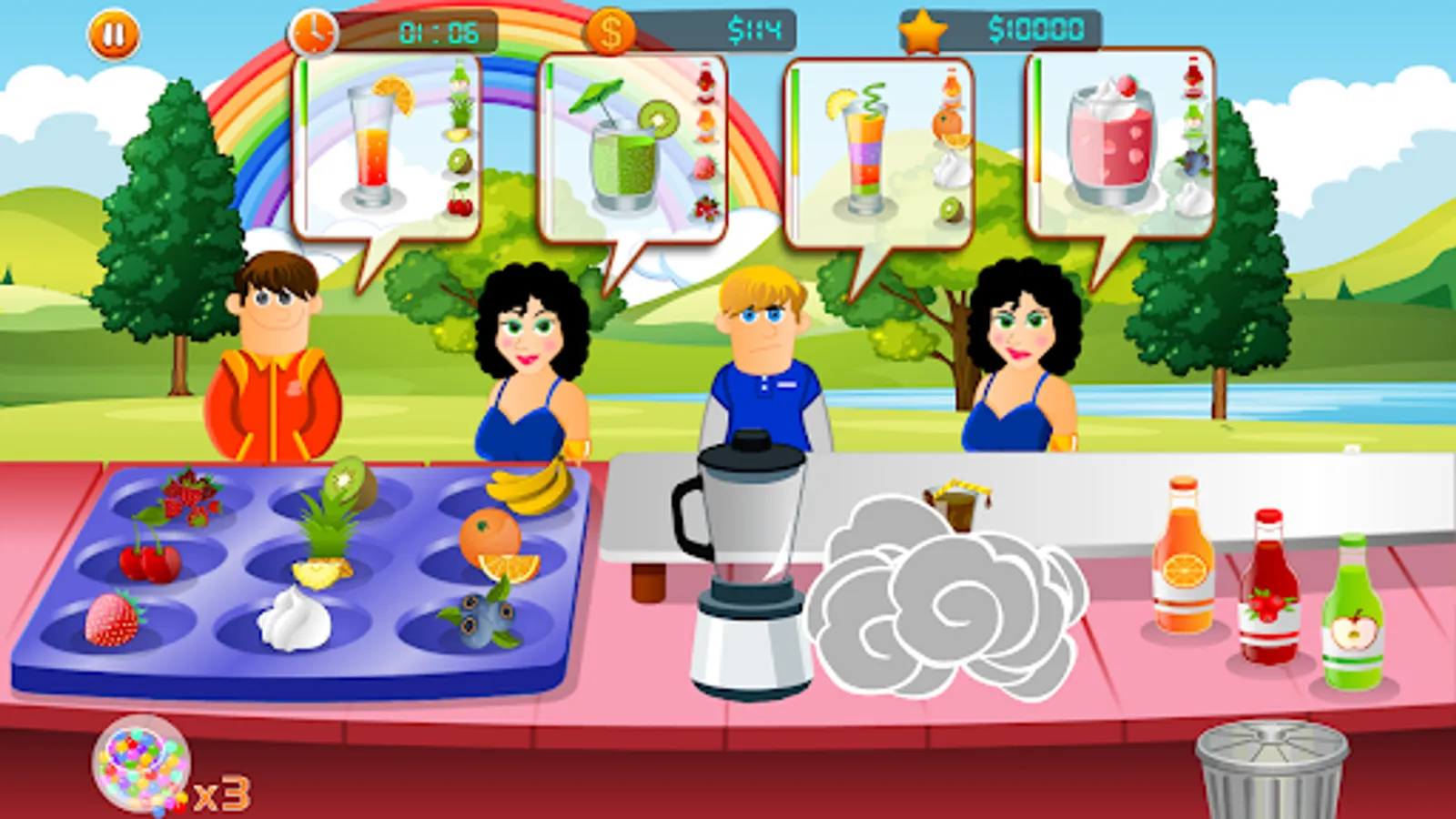 Fruit Juice is your choice, If you want a relaxing game. It is a simple and addicting game for relaxing. This is the popular and classic type game. You can make fruit smoothies by taking orders from customers what juice customers order, such as mixed fruit juices with strawberries, kiwi, oranges, and have to meet the needs of customers to receive money. to pass to the next level.