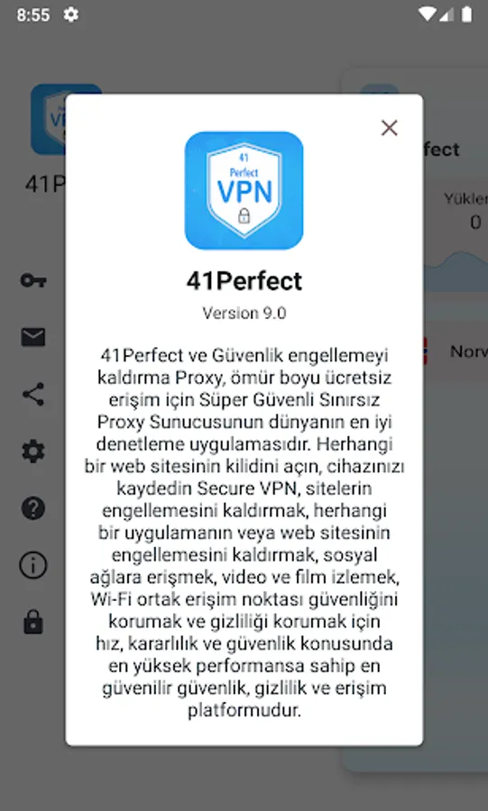 41 Perfect bir vpn uygulamasıdır. İstediğiniz kadar kullanabilirsiniz. Sizden ek bir ücret talep etmez. Bu premium versiyonda reklam yoktur ve tüm serverlar aktif şekilde kullanılabilir