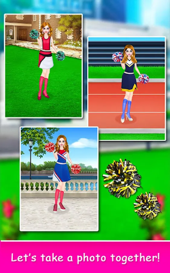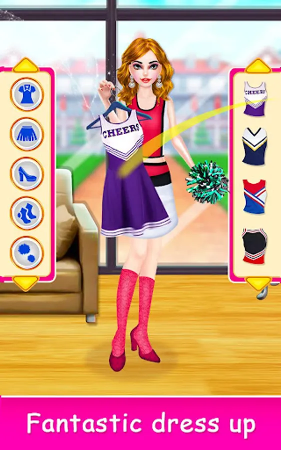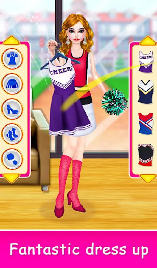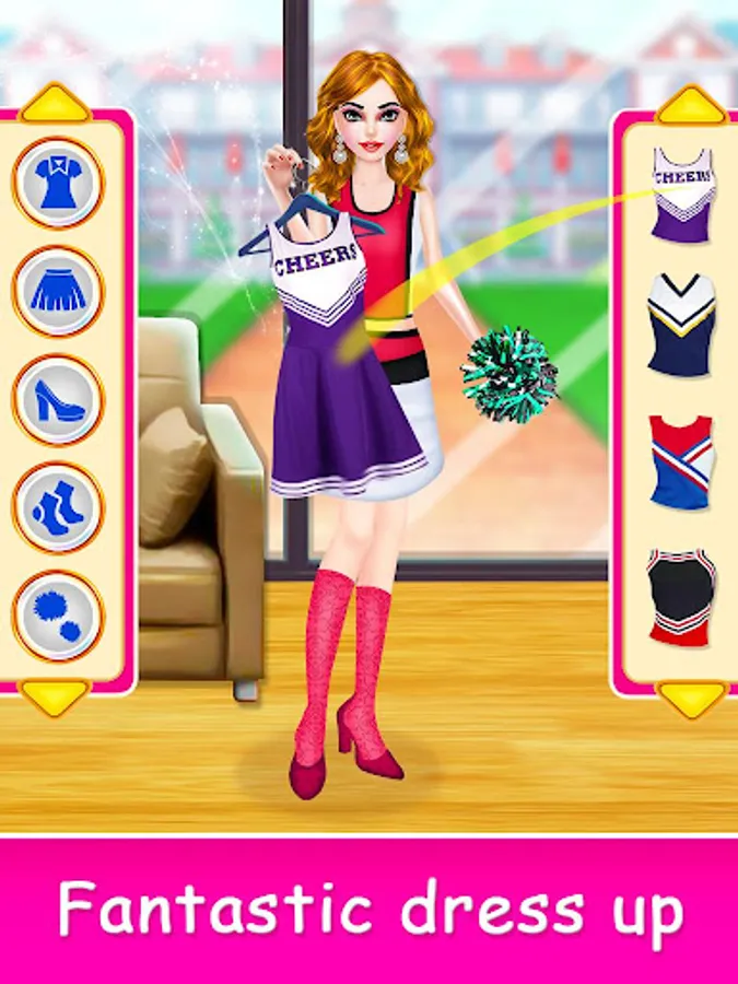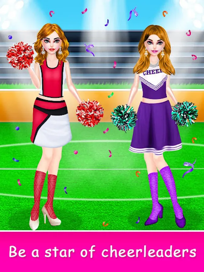 Today international cheer competition final odishan time. Get ready for makeup room. Start day gym work out. You just joined a cool new international school. Awesome back hairstyle, Trendy beauty look. Join the your dance squad and improve cheerleading moves. Perfect stage Decoration view now. To make sweet delicious fruit juice, you've to choose the fruit van in selection screen. You have to look your best, that will be more relax spa time. Cheerleader cleaning time. Win celebration and Amazing photoshoot.
