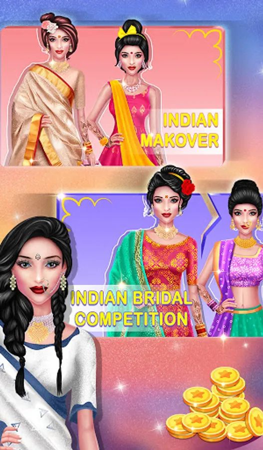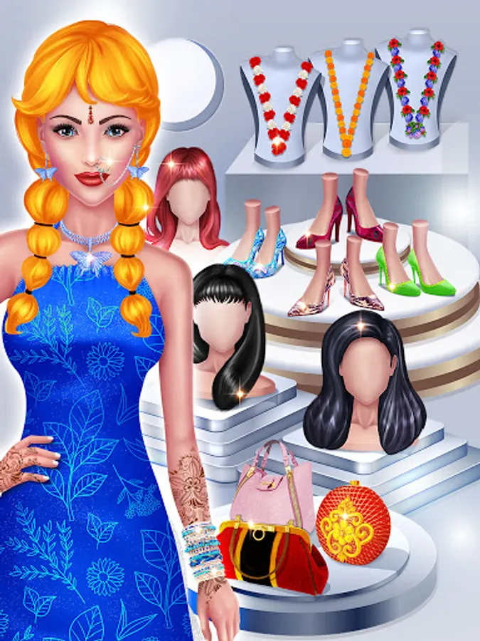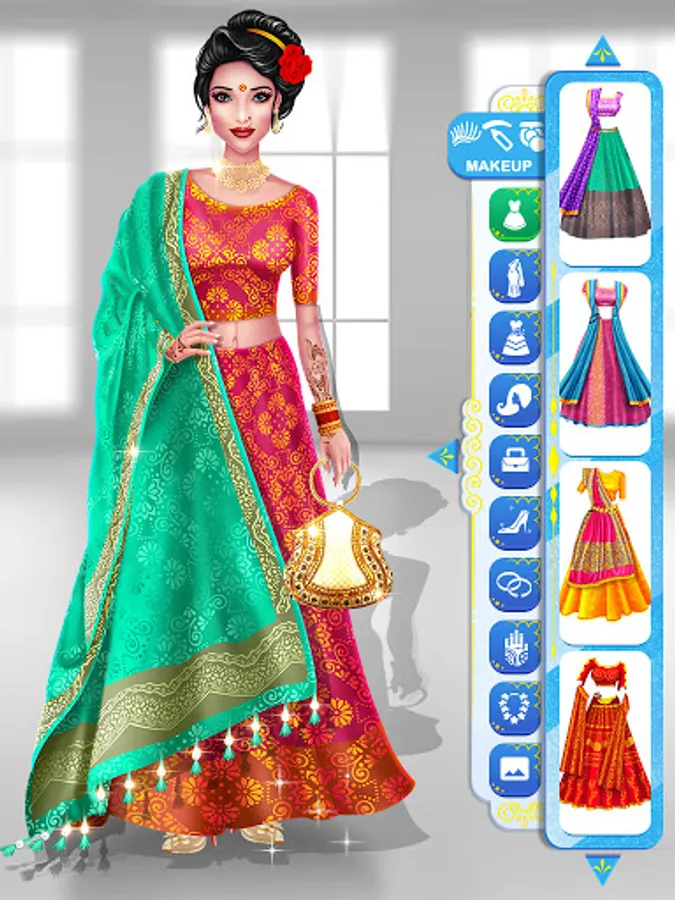 Get ready to fashion show. Bridal gorgeous collection choose from indian wedding dresses, makeup, jewelry, hairstyles, tops, shoes, sarees, heels, earrings, necklace accessories and more. Specially indian doll girls games. Welcome to traditional wedding dream. It's time to royal princess Designing dress up and Brides makeup game. This is the most beautiful makeup salon girl game. International outfits for stunning Makeover games for unlimited fun. Indian royal brides wedding games. Big day indian wedding fashion brides. Help this bride new hit models fashion trends. There are many rituals and ceremonies and Hindu wedding games with level. Bride wedding doll princess marriage offline makeup games. Give your indian princess glowing and beautiful hairstyle levels.