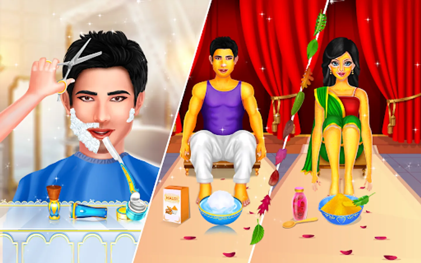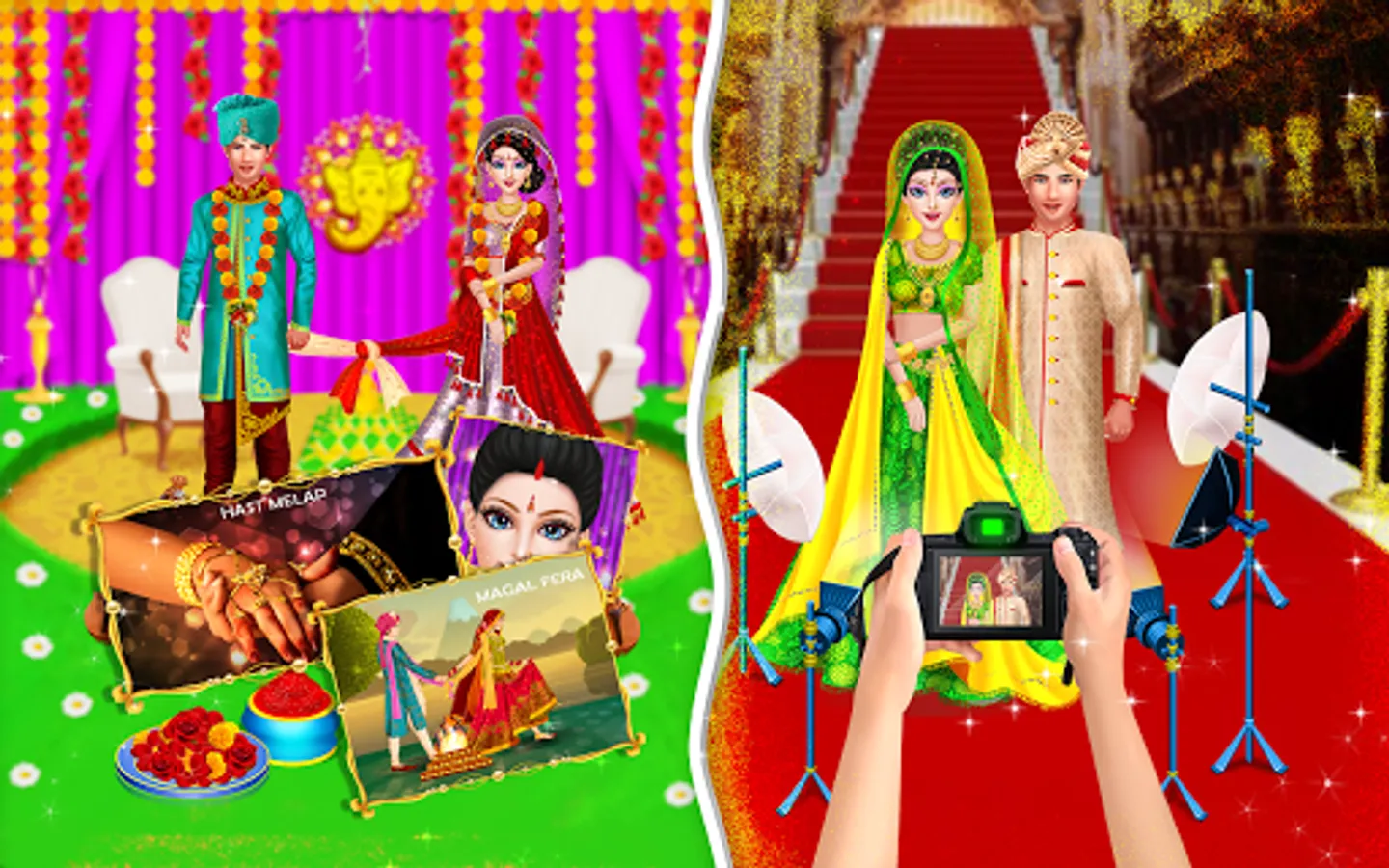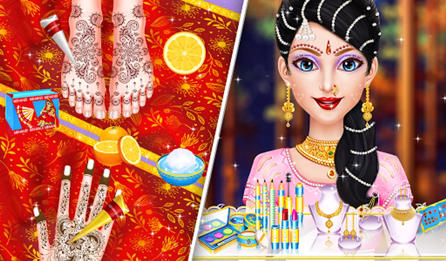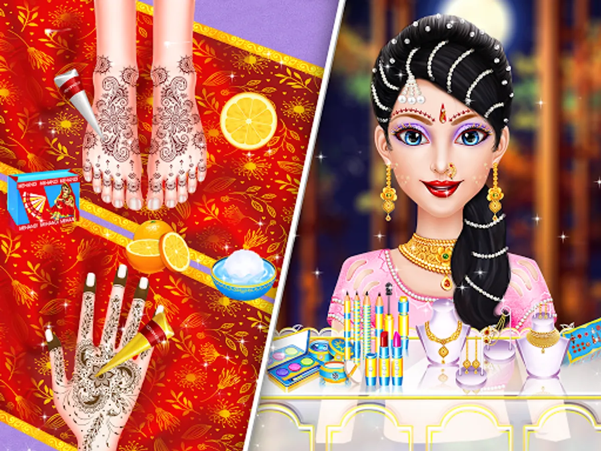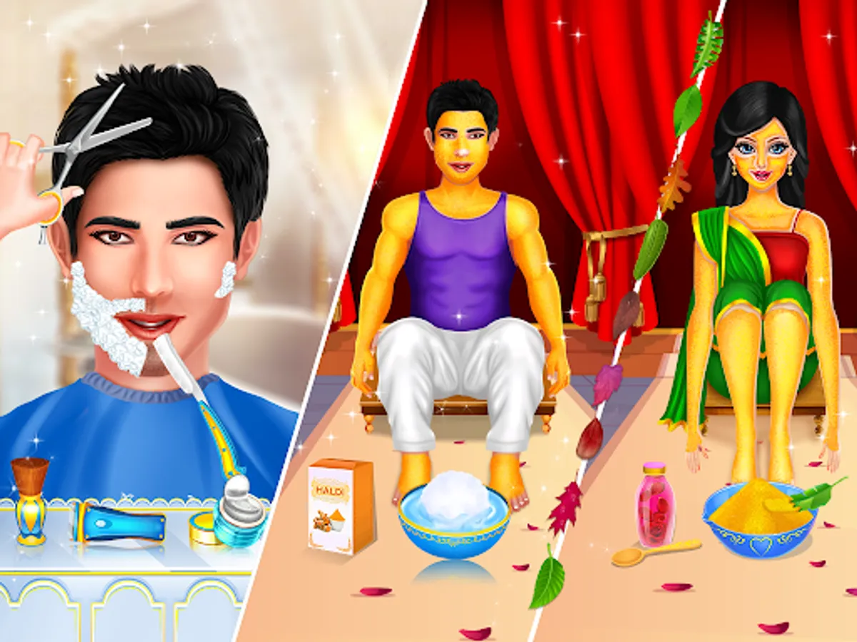 Namaste Friends! Welcome to Indian wedding day. Get ready for wedding! Indian wedding game with new features like unique spa, hand manicure, pedicure, hand mehndi, leg mehndi, bride haldi, groom haldi, face spa, makeup, bride dress up, groom dress up, photoshoot. Help this bride in magical makeover by becoming Indian fashion stylist and make her look fabulous with new fashion trends. There are many rituals and ceremonies in a Indian marriage Both can find the perfect dress and prepare for the Indian wedding day and love marriage. Every Girls want to look beautiful with stylist fashion on her wedding! every Indian princess doll want to look like bridal doll girls in her own Indian wedding. And every girl wants to become Indian bridle princess. Wedding planner plan a traditional wedding. A special colourful outfit and her makeup and accessories are amazing for gorgeous Dulhan. Bride look like Punjabi Wedding Traditions; wedding makeup salon Bridal looks like royal princess. Wedding girl look like beautiful princess. Bride shop luxury spa, hair salon, hairstyle, stylist dress, lipstick glow. Play the traditional game which allow to play with wedding. let's help this girl She always wants to look beautiful royal queen.