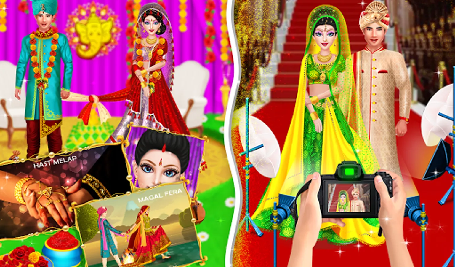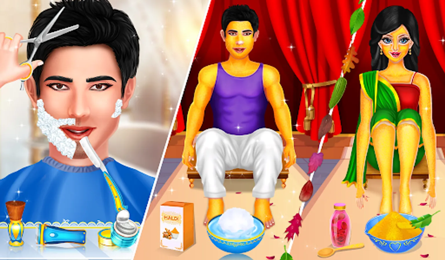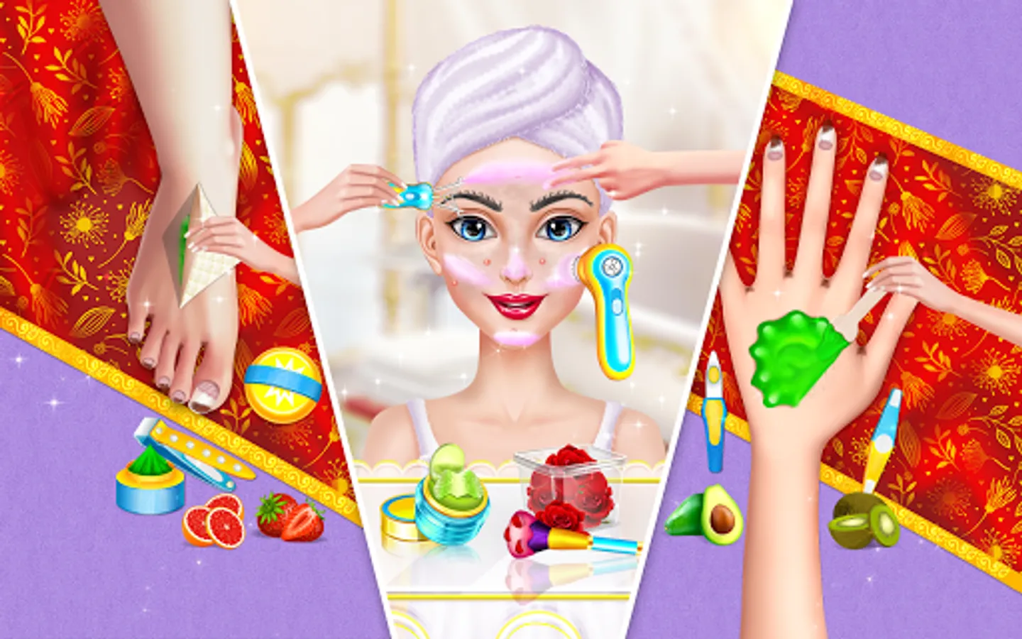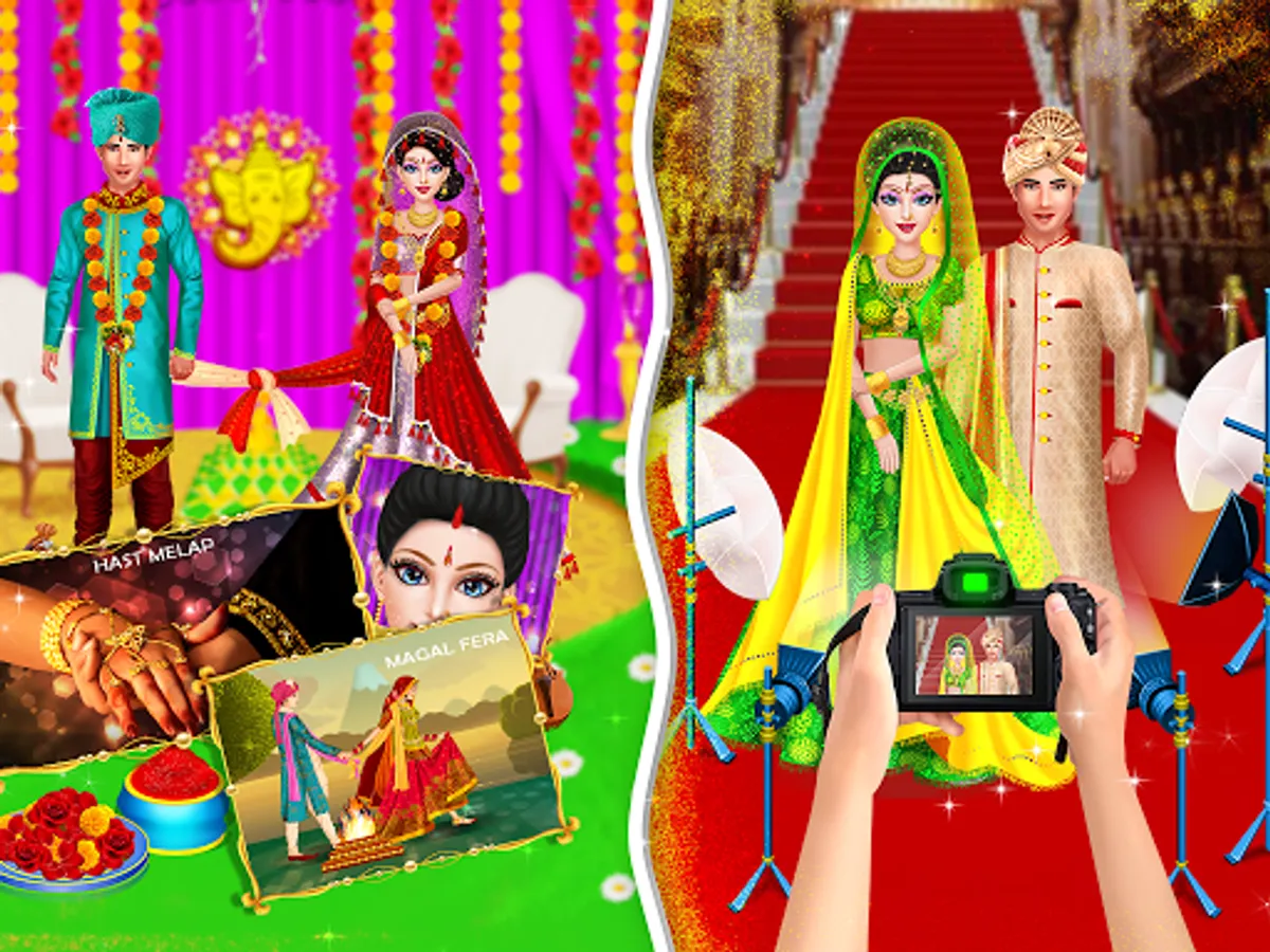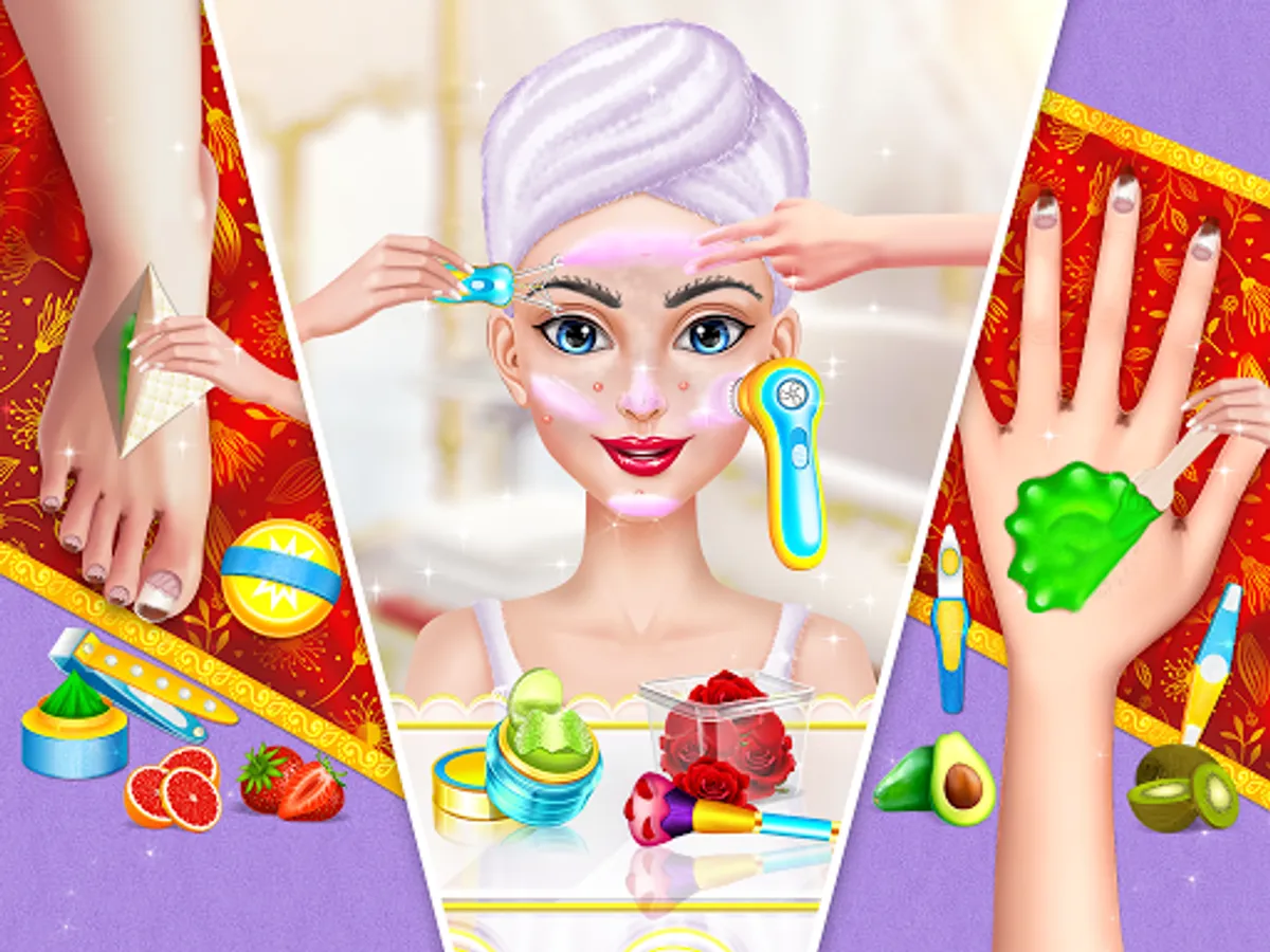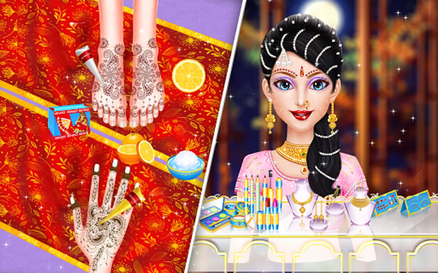 Namaste Friends! Welcome to Indian wedding day. Get ready for wedding! Indian wedding game with new features like unique spa, hand manicure, pedicure, hand mehndi, leg mehndi, bride haldi, groom haldi, face spa, makeup, bride dress up, groom dress up, photoshoot. Help this bride in magical makeover by becoming Indian fashion stylist and make her look fabulous with new fashion trends. There are many rituals and ceremonies in a Indian marriage Both can find the perfect dress and prepare for the Indian wedding day and love marriage. Every Girls want to look beautiful with stylist fashion on her wedding! every Indian princess doll want to look like bridal doll girls in her own Indian wedding. And every girl wants to become Indian bridle princess. Wedding planner plan a traditional wedding. A special colourful outfit and her makeup and accessories are amazing for gorgeous Dulhan. Bride look like Punjabi Wedding Traditions; wedding makeup salon Bridal looks like royal princess. Wedding girl look like beautiful princess. Bride shop luxury spa, hair salon, hairstyle, stylist dress, lipstick glow. Play the traditional game which allow to play with wedding. let's help this girl She always wants to look beautiful royal queen.