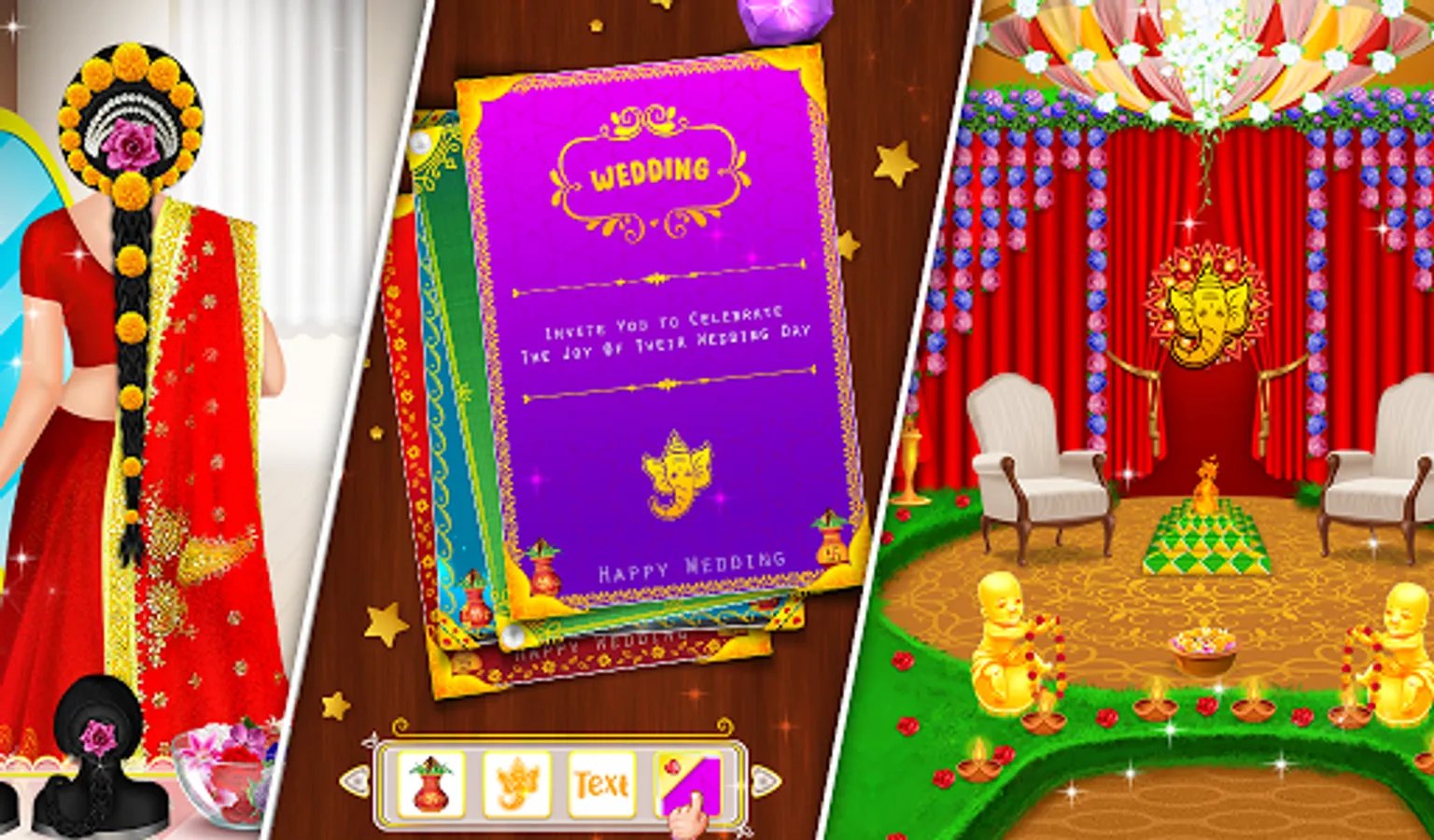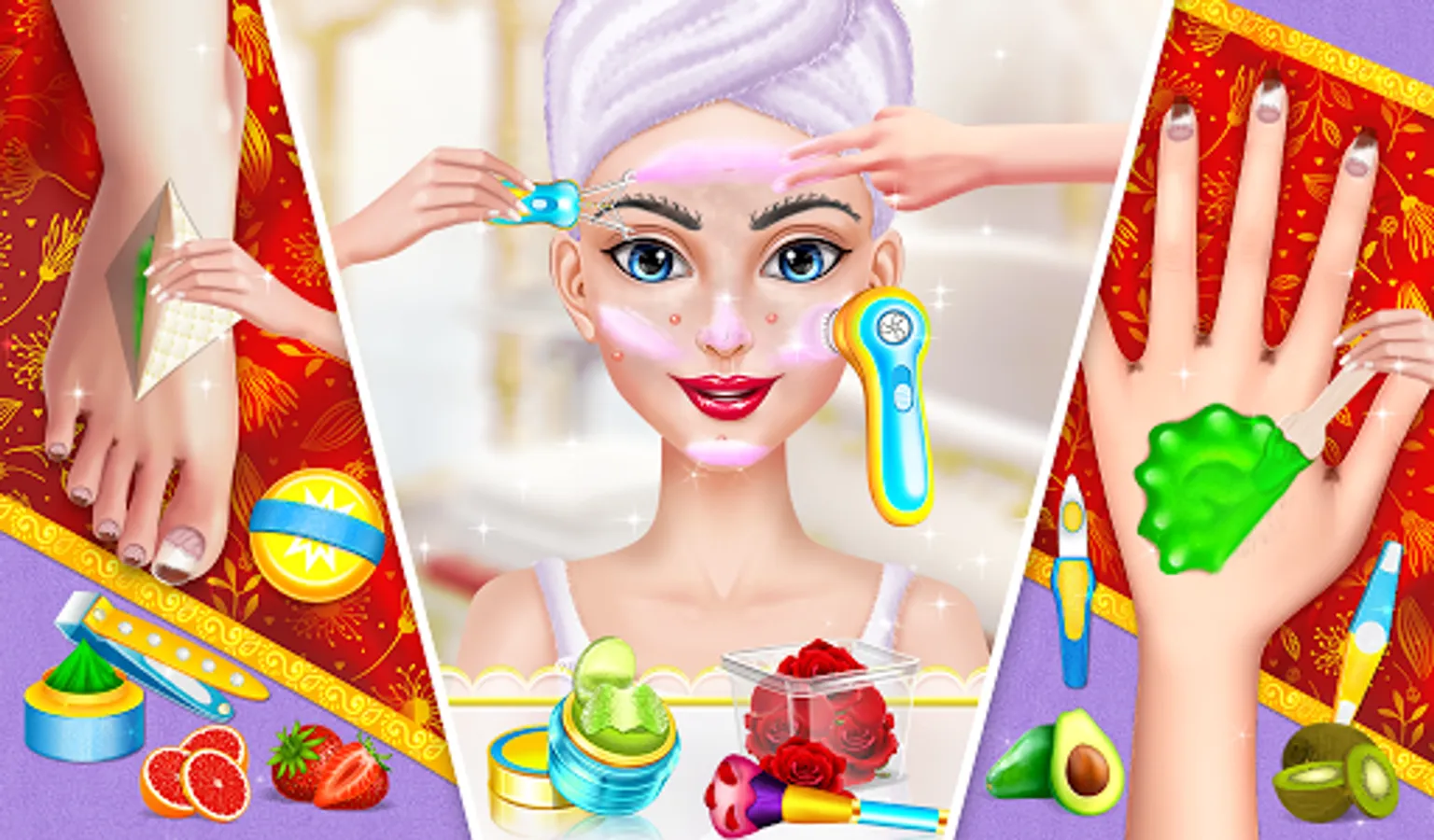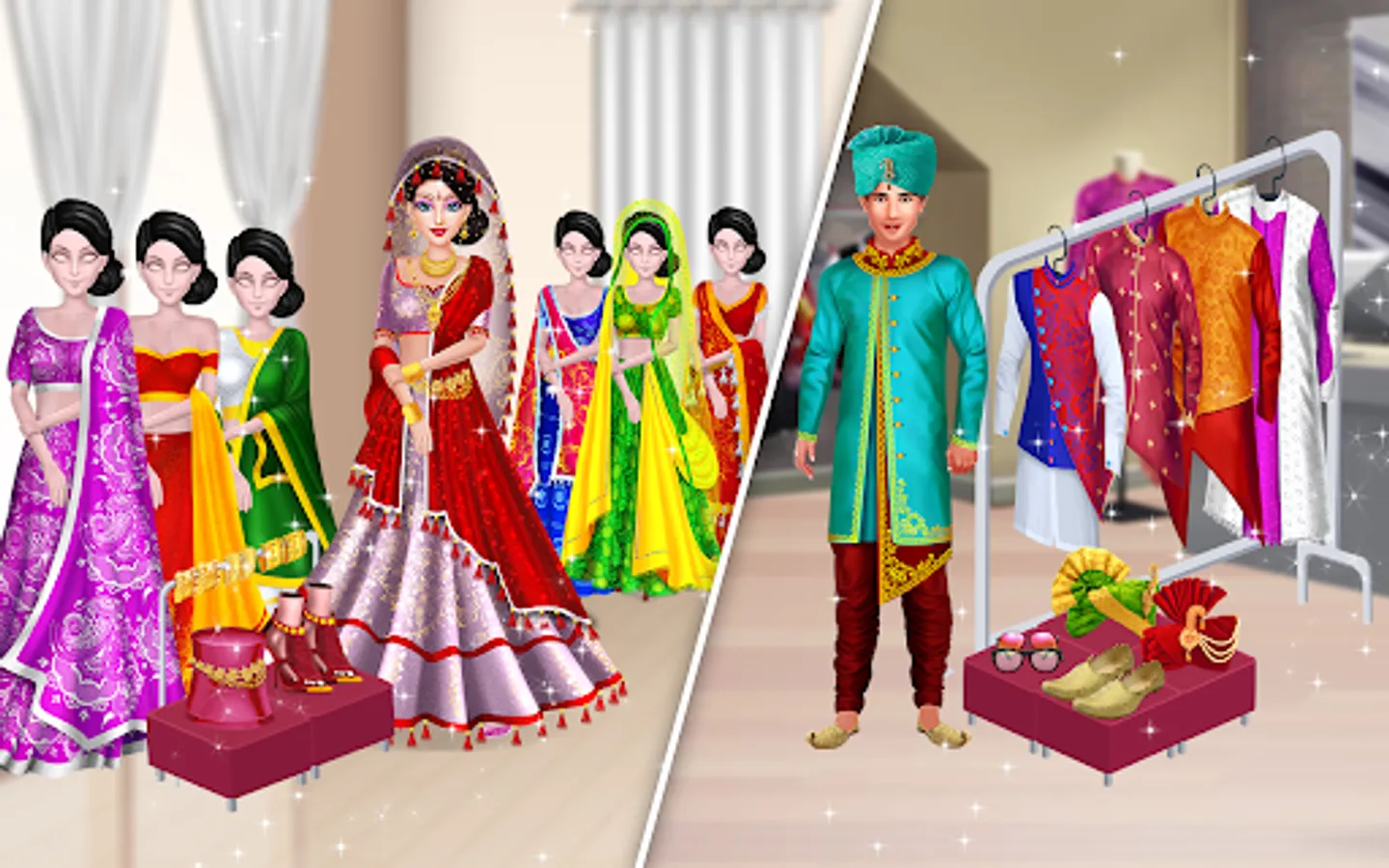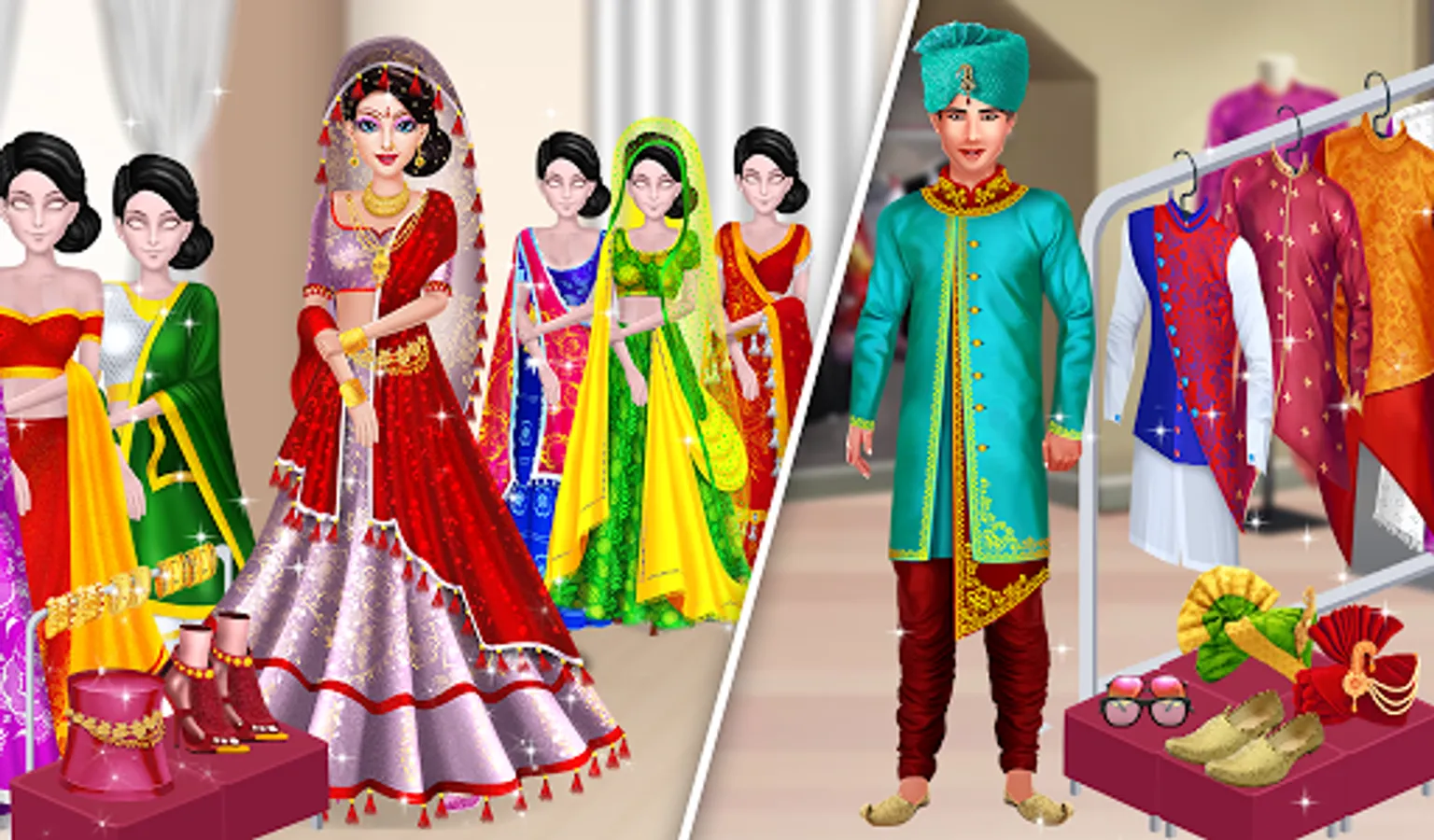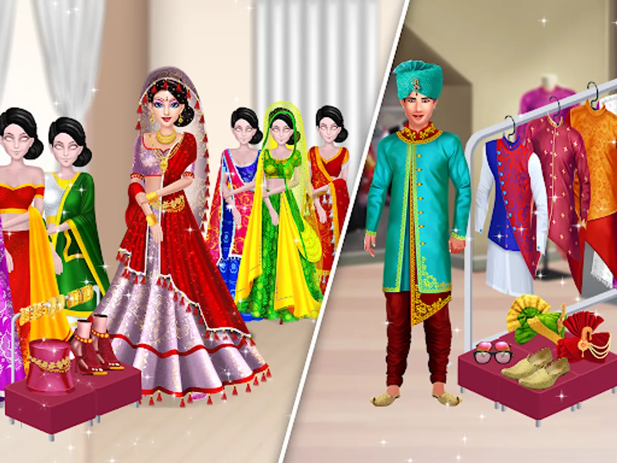 Namaste Friends! Welcome to Indian wedding day. Get ready for wedding! Indian wedding game with new features like unique spa, hand manicure, pedicure, hand mehndi, leg mehndi, bride haldi, groom haldi, face spa, makeup, bride dress up, groom dress up, photoshoot. Help this bride in magical makeover by becoming Indian fashion stylist and make her look fabulous with new fashion trends. There are many rituals and ceremonies in a Indian marriage Both can find the perfect dress and prepare for the Indian wedding day and love marriage. Every Girls want to look beautiful with stylist fashion on her wedding! every Indian princess doll want to look like bridal doll girls in her own Indian wedding. And every girl wants to become Indian bridle princess. Wedding planner plan a traditional wedding. A special colourful outfit and her makeup and accessories are amazing for gorgeous Dulhan. Bride look like Punjabi Wedding Traditions; wedding makeup salon Bridal looks like royal princess. Wedding girl look like beautiful princess. Bride shop luxury spa, hair salon, hairstyle, stylist dress, lipstick glow. Play the traditional game which allow to play with wedding. let's help this girl She always wants to look beautiful royal queen.