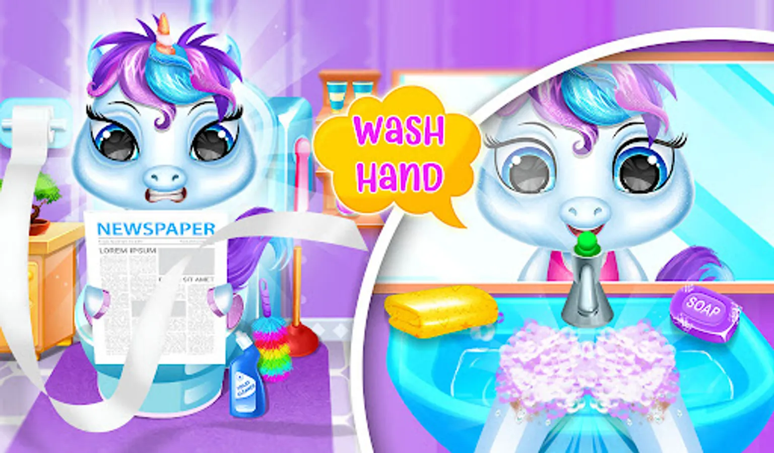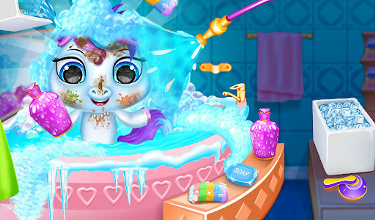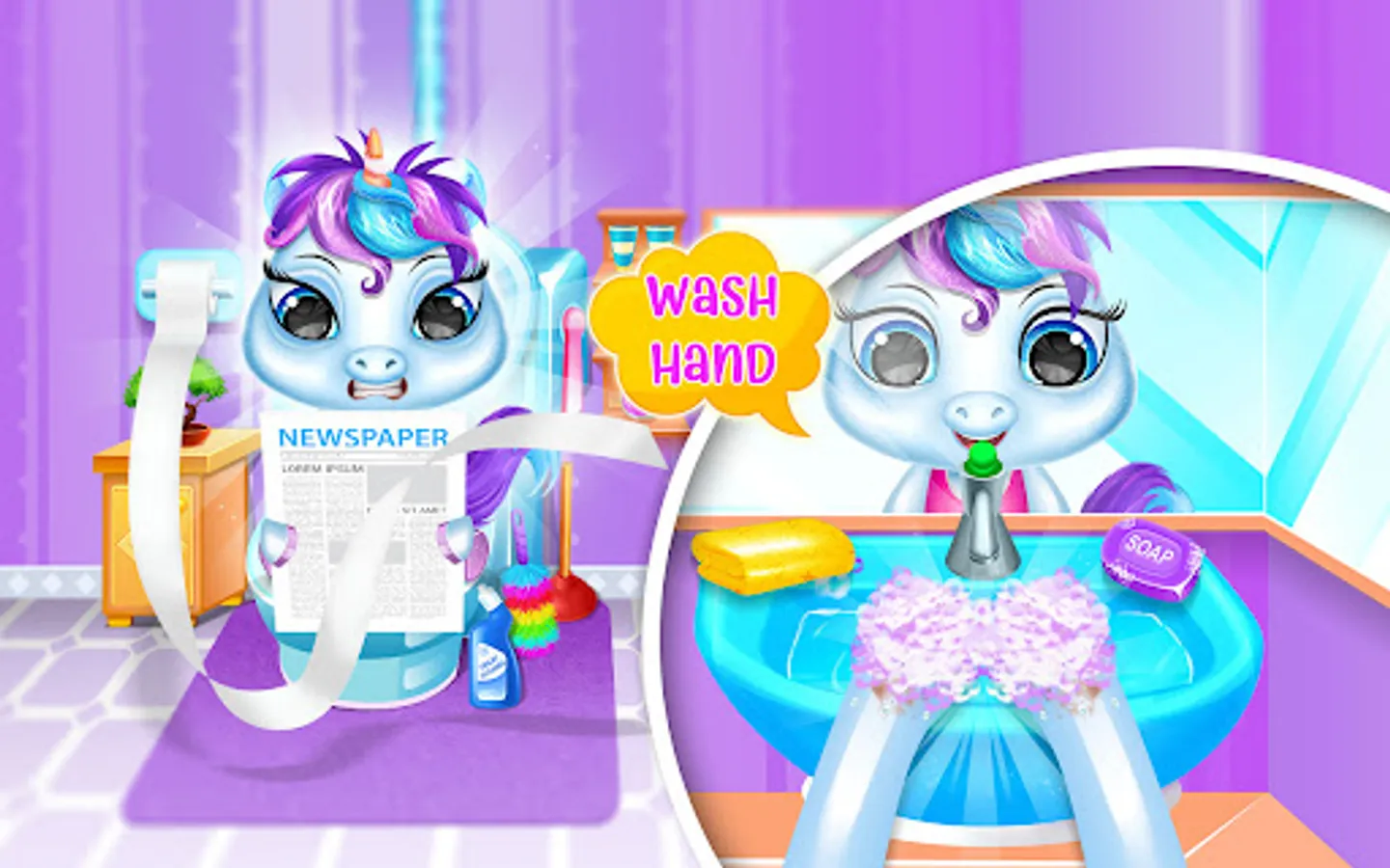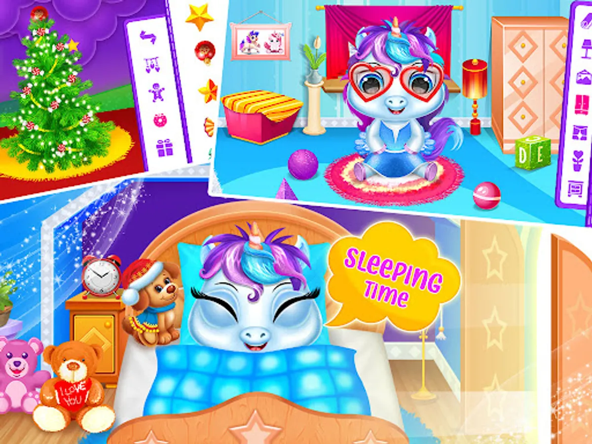 Join your favorite super cute virtual unicorn around world! Become the best magical pony with fun my unicorn virtual pet game for girls. Play pony pet unicorns grow with dress up, bathe, sleep, house decoration, christmas tree decoration, your friend. Clean your pet pony and delicious food. Care for your pet pony unicorn virtual care girls games every day.