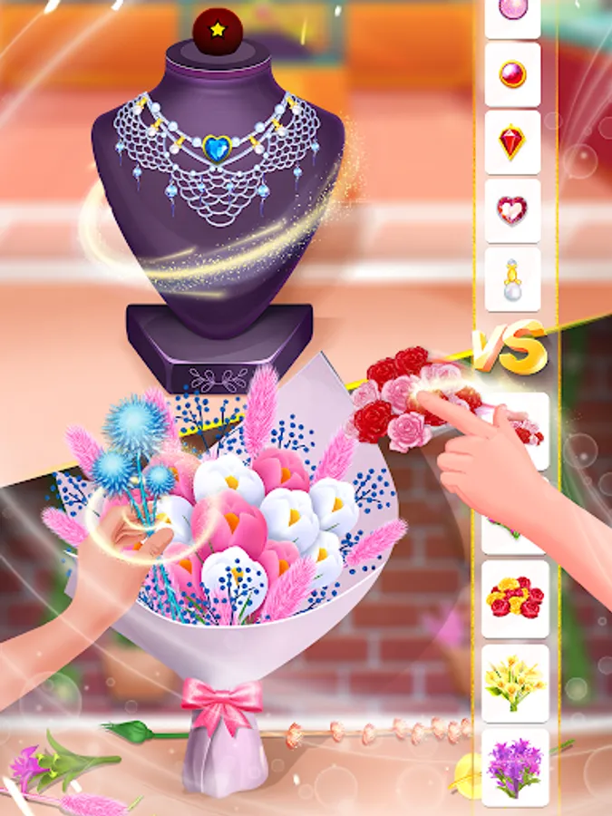 - Choose styling items like a ring, necklace, wedding dresses, bridesmaids, jewelry