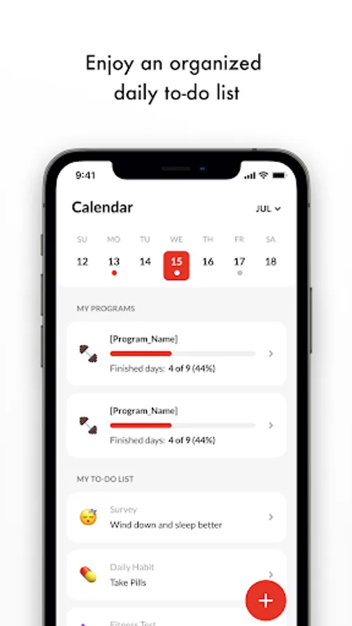 From there, slide over one tab to the fitness calendar that will act as your daily workout planner. When your coach assigns you a fitness plan, asks you to weigh yourself, track your daily nutrition macros, or requests a progress photo - you’ll find that to-do list right here. Clicking on the workout for the day will take you right to the first exercise of your fitness program.