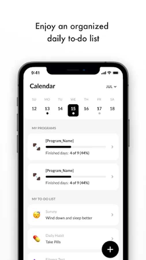 From there, slide over one tab to the fitness calendar that will act as your daily workout planner. When your coach assigns you a fitness plan, asks you to weigh yourself, track your daily nutrition macros, or requests a progress photo - you’ll find that to-do list right here. Clicking on the workout for the day will take you right to the first exercise of your fitness program.