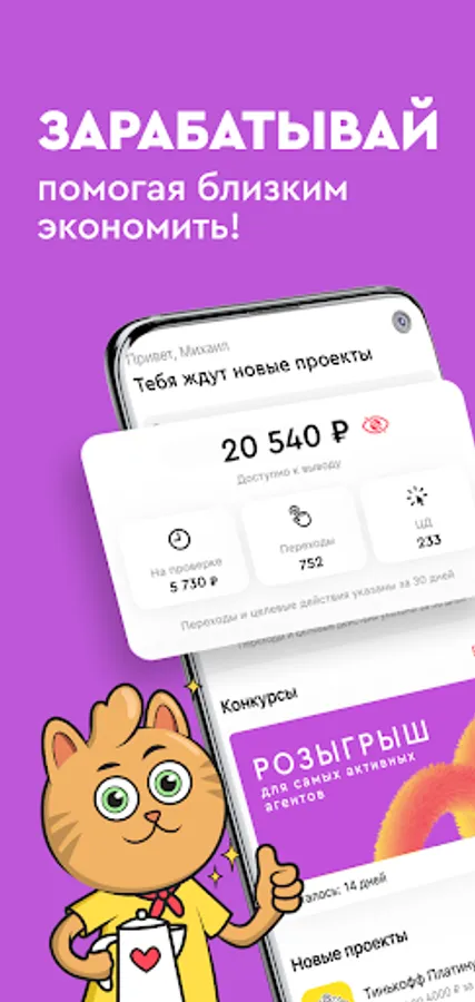 After completing the questionnaire, the application will start generating unique links to participate in the promotion and receive discounts in online stores and other partners. Each purchase made using the link will increase your mobile earnings of real money on the Internet.
