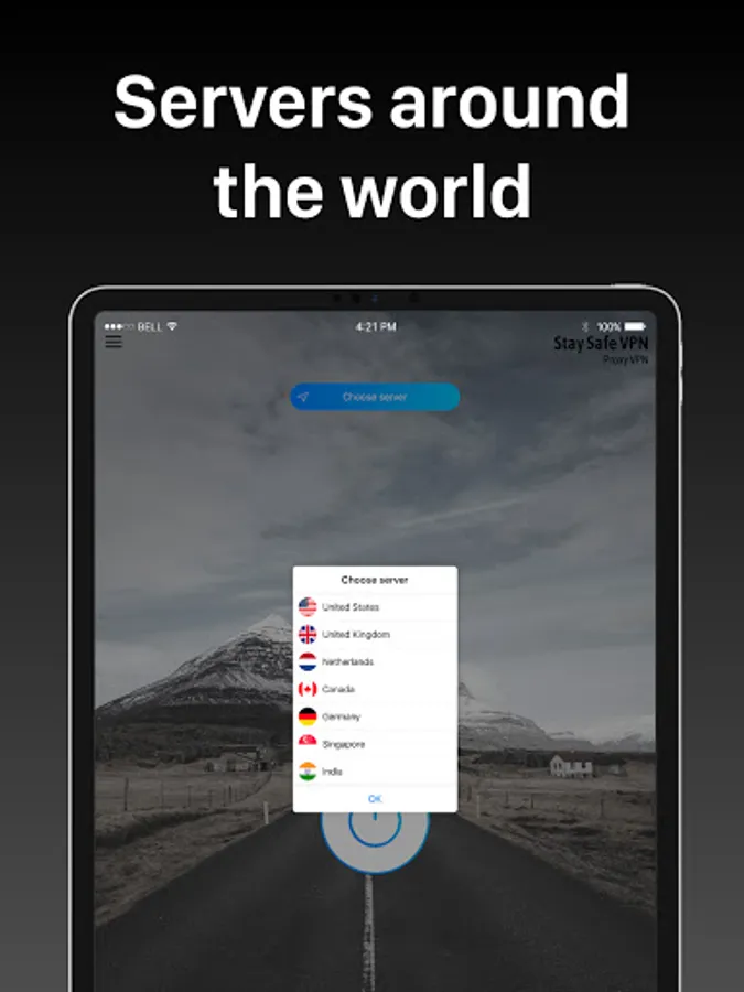 You simply need to choose a location within the app and you're instantly connected to our network.