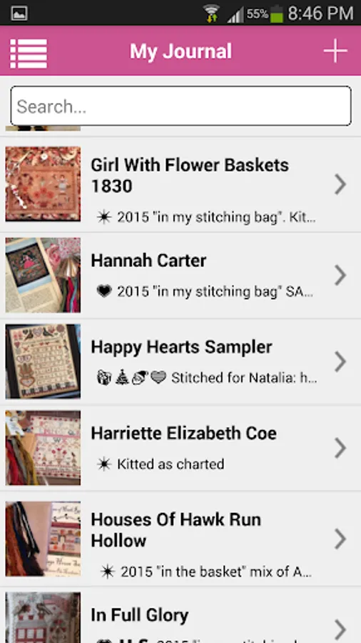 X-Stitch is an easy-to-use app designed by cross stitchers for cross stitchers. X-Stitch includes Journal, Inventory and Shopping List modules. The Journal lets you categorize and track all your projects, add photos, document the start and finish dates, and keep detailed project notes. The Inventory module is a fast and fun way to manage your cross-stitch stash. Charts, threads and linen can be added with just a few clicks. Note: Chart details (names of chart, notes, etc.) are manually entered. X-Stitch comes pre-loaded with hundreds of chart designers and approximately 6,000 thread selections that you can quickly and easily add to your inventory. Use the Shopping List to prepare for your next trip to the needlework shop. And because X-Stitch uses Cloud technology, you can securely access your data from all your IOS and Android devices. No manual synching or duplicate typing! Like to customize? X-Stitch lets you pick your favorite image for the Home Screen. Want to share? X-Stitch supports sharing via Facebook, Twitter, E-Mail, Text, and more!