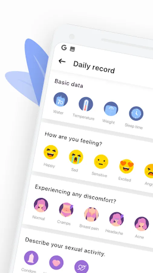 Use Minna to remind of your period, PMS, ovulation and fertility.