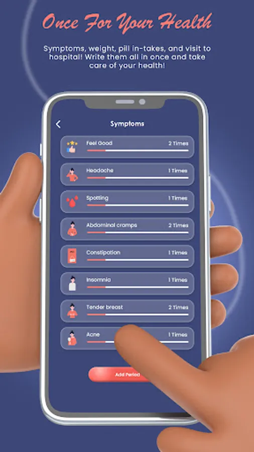 · Your reoccurring symptoms, such as cramping, soreness, and headaches, will be predicted.