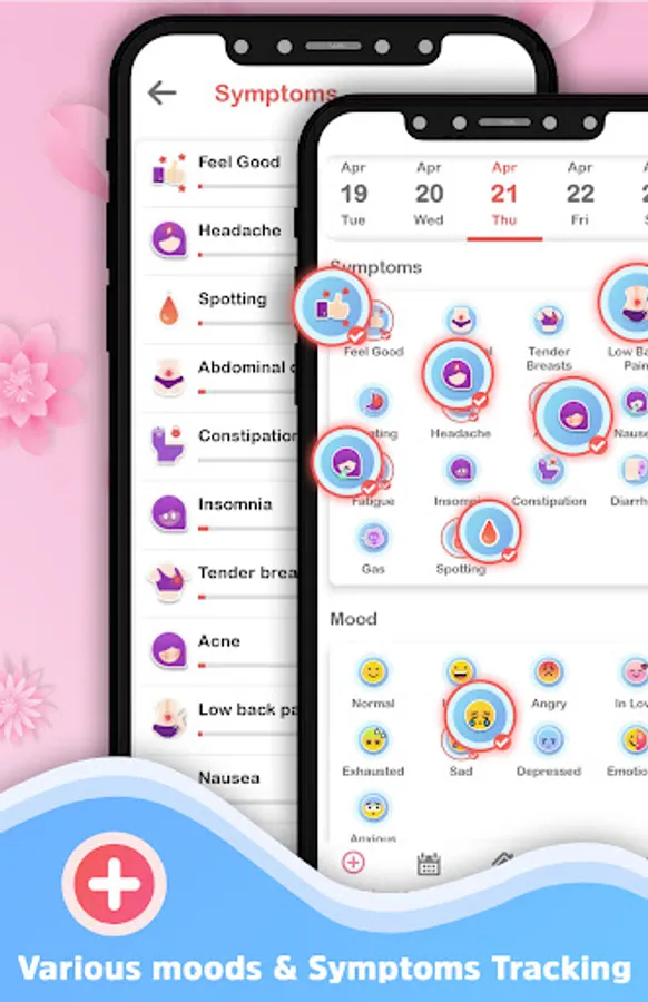 - Save information on flow, intercourse, symptoms, moods, temperature, weight, medicine, PMS, and other notes with the daily calendar planner