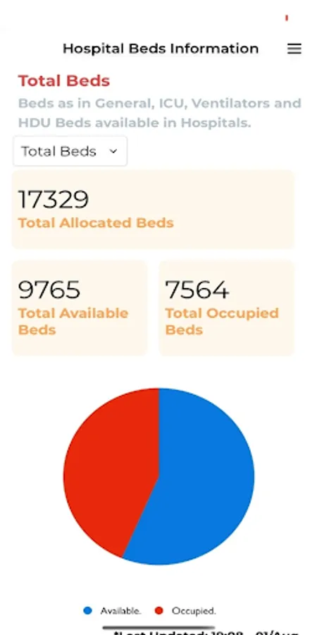 >Current Availablity of Beds in Hospitals, with detailed to Gen, ICU, HDU beds.