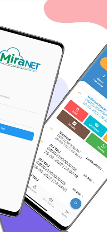 MiraNET e-Archive GIB Portal Integration, create your 2-5 Thousand e-Archive Invoices from mobile. It is a fully compatible mobile application that you can create your Invoices between 2-5 Thousand TL from the E-Archive Invoice portal of the Revenue Administration and send them to the GIB E-Archive Portal. MiraNET eArchive Transactions with which you can make Invoice Application * Invoice Creation (Your Invoices are instantly transferred to the GIB Portal) * Viewing, Signing, Cancellation of Issued Invoices * Signed Invoices, Sharing in PDF Format with a single click (Whatsap, etc.)