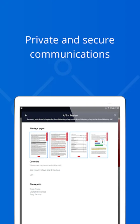 - Secure, in-app note-sharing with fellow board members and/or administrators