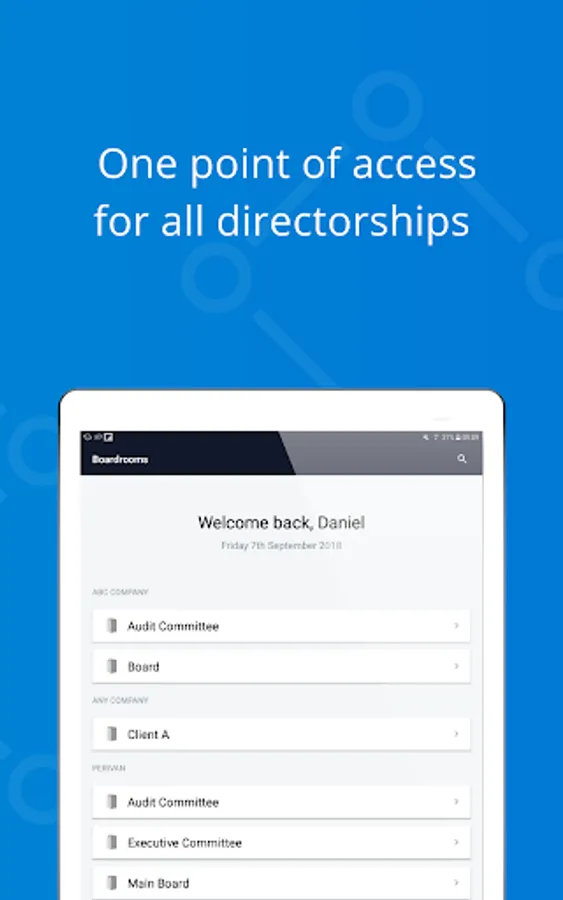 To get started, simply download the app, and enter your VirtualBoardroom® login details. You’ll then be asked to create and confirm your secure PIN.