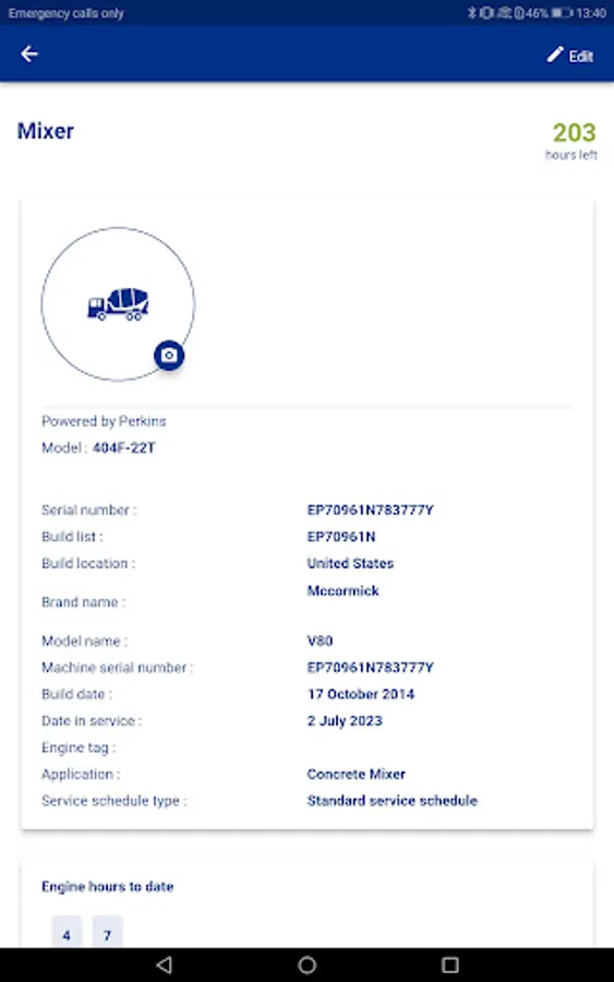 If you’re a fleet owner servicing many Perkins engines, Perkins My Engine App allows you to easily store and access the above information in one place. Simply input the data for each engine into the App – naming each by machine type, engine name or number and we’ll remind you when the next service interval is due.