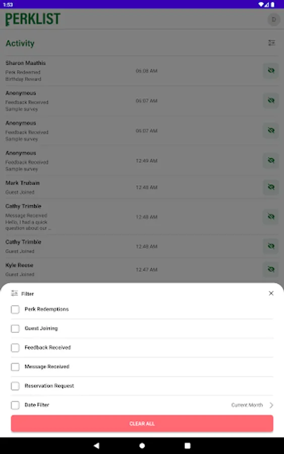 A dashboard to view and filter customer messages, send replies, analyze feedback surveys, and more.