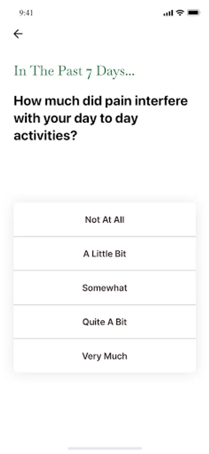 In the TAPR-CPM app, you can completely weekly pain survey about how intense your pain is and how it may be interfering with your daily activities. You can share your survey results with your doctor that prescribes your opioid medications and review the results during your next visit. In the app, you can also review your opioid tapering plan, changes to your opioid medications and suggested activities to help you manage your chronic pain.