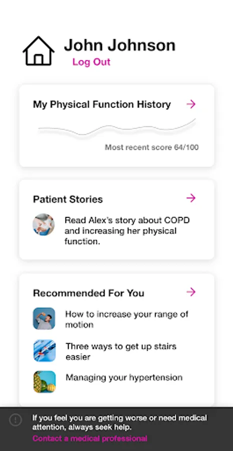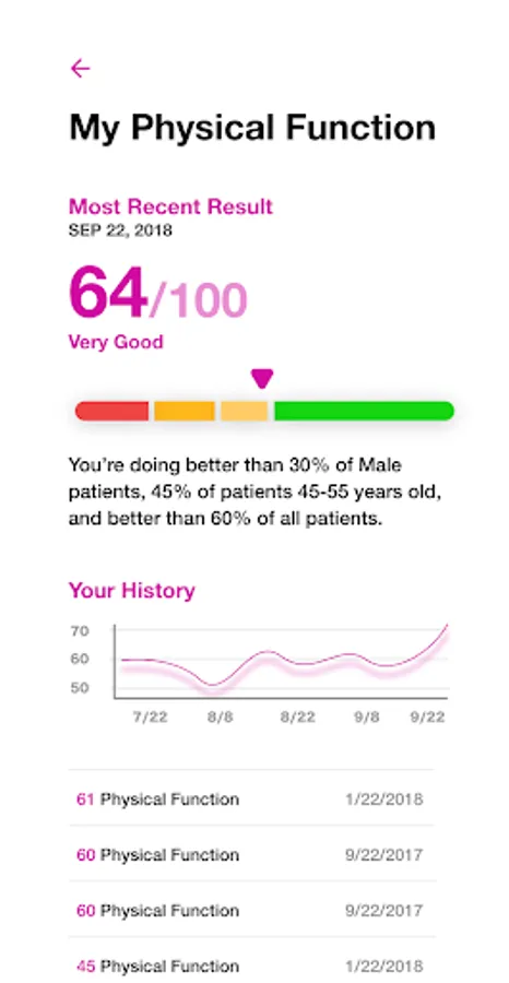PRISM underwent extensive usability testing and enables patients to complete physical function and other PROMIS measures through an easy to use app, with features including score trending, peer group comparisons, and relevant recommendations for follow-up actions and education materials aimed to further engage patients in their care. Patient Reported Outcomes captured by the app are seamlessly integrated into the EHR and available for providers to use, in real-time, in their clinical care and shared decision making with the patient.