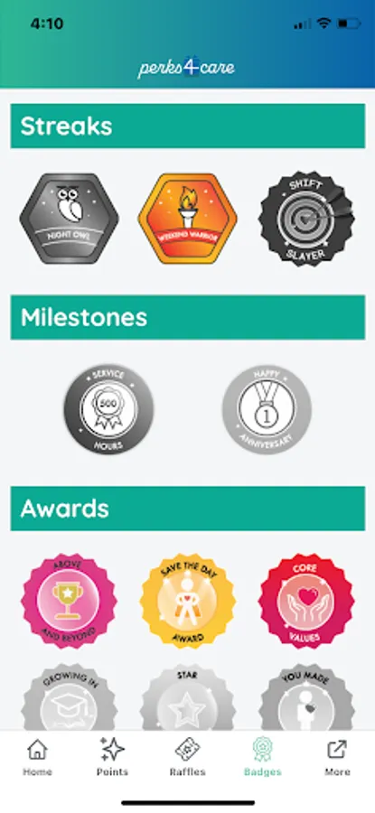 The Perks4Care Caregiver Recognition and Rewards Program makes it easy to show your caregivers how much you value them. Points are earned by working shifts, earning badges, and winning raffles. Points can then be redeemed in app by the caregiver by selecting a Gift Card and card value.