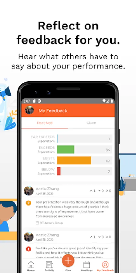 - Give and receive real-time, authentic feedback