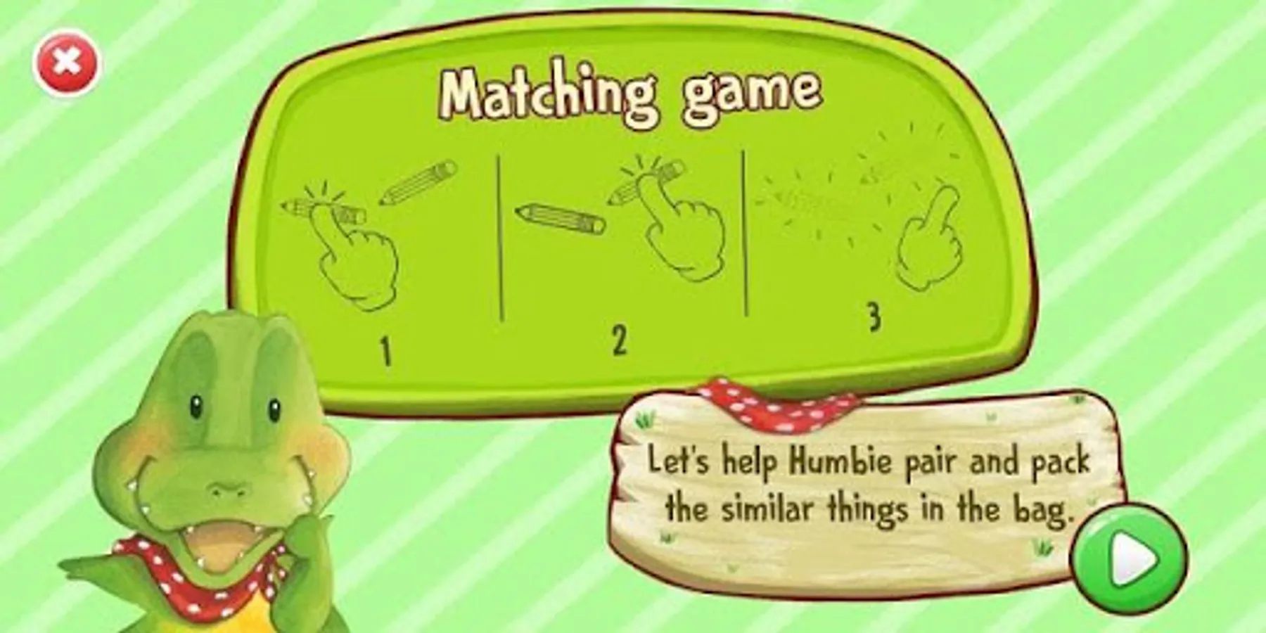 Skill training game created from the humorous character A cute little crocodile to love children in the fairy tale Hello Humbie series.