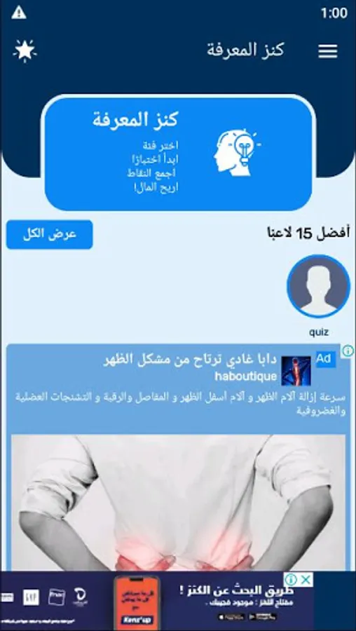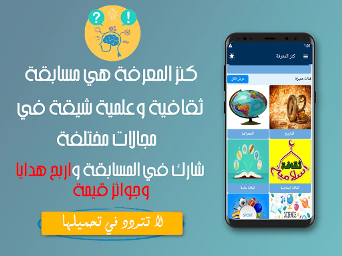 The knowledge treasure application is an educational cultural application that contains many general questions in various fields such as biology, Islamic sciences, sciences such as: physics and chemistry, computer or computer, Arabic language, geography, history and psychology, various general questions. You can choose the section you want and answer all the questions in that section. It also works to provide gifts such as Amazon or Google cards .... to all winners in the competition to earn money online for free and without much effort.