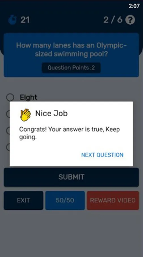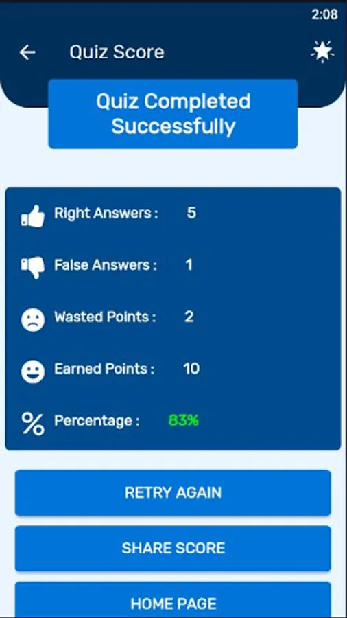 3- To finish quiz and earn money you have to give correct answers all questions' %50, If you didnt answer %50 as a true you can replay same quiz and earn money.